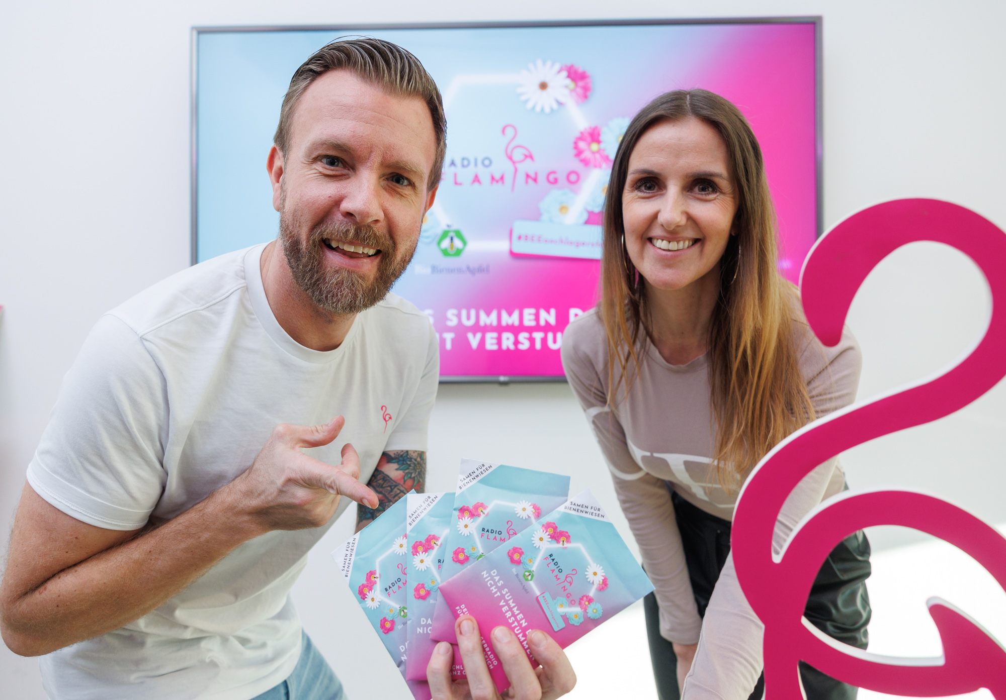 „Schön ist es auf der Welt zu sein, sagt die Biene zu dem Stachelschwein“, singen Anita Hegerland und Roy Black in ihrem legendären Schlager „Schön ist es auf der Welt zu sein“ aus dem Jahr 1971. Und das soll auch so bleiben, 2024 ebenso wie in der nahen und fernen Zukunft. Deshalb unterstützt Radio Flamingo, das neue Schlagerradio für ganz Österreich, das Umwelt- und Gesellschaftsprojekt BioBienenApfel. Mit der Übergabe der ersten Radio-Flamingo-Samen, mit denen Hörer:innen Bienenweiden pflanzen können, wurde die Partnerschaft kürzlich von BioBienenApfel-Initiator Manfred Hohensinner und Radio-Flamingo Geschäftsführer Gottfried Bichler besiegelt.