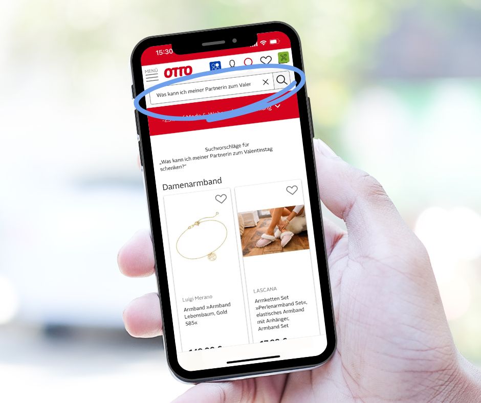 Die GenAI-Suche auf ottoversand.at kann nun auch komplexe persönliche Anfragen in inspirierende Ergebnisse übersetzen. Kund*innen, die beispielsweise für den Valentinstag nach Geschenken für ihre Liebsten suchen, müssen sich also nicht mehr überlegt haben, aus welcher Produktkategorie es stammen soll. Mit Suchanfragen wie „Was kann ich meiner Partnerin zum Valentinstag schenken?“ liefert die OTTO-Suche in Zukunft eine Übersicht der beliebtesten Artikel aus den unterschiedlichsten Sortimenten. Christoph Schernberger erklärt: „Suchen Kund*innen nach einem inspirativen Ergebnis, erkennt unser SearchBuddy die Suchanfragen. Diese werden mithilfe von GenAI erkannt und in relevante Suchbegriffe übersetzt, die auf ottoversand.at passende Ergebnisse liefern.“ So erhalten sie für das Valentinstagsgeschenk ihrer Liebsten derzeit Produktvorschläge von Schmuck über Parfum bis hin zu Deko-Artikeln.