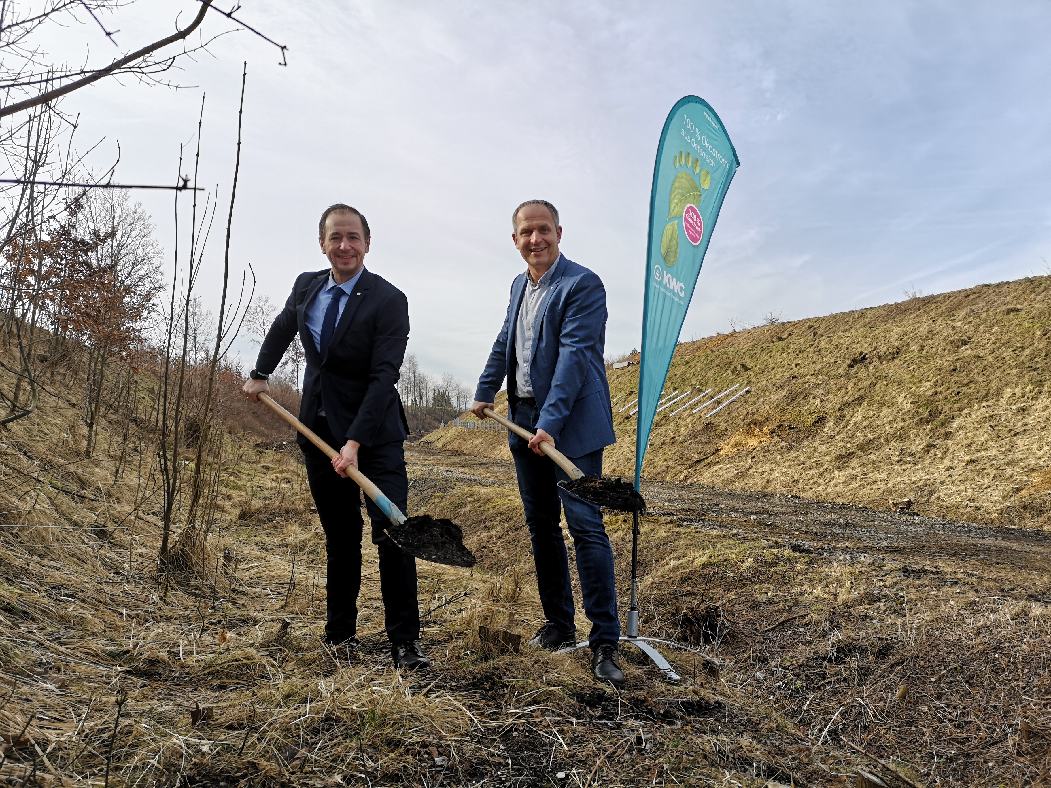 „Die PV-Anlage am ehemaligen Bahndamm Schlatt wird voraussichtlich jährlich Strom für etwa 400 Haushalte erzeugen. Das kommt einem wichtigen Beitrag zur nachhaltigen Energieversorgung der Region gleich,“ zeigt sich Peter J. Zehetner, Geschäftsführer des Energieversorgers KWG stolz. Die Gemeinde Schlatt stellt das Grundstück für dieses Sonnenkraftwerk zur Verfügung und erhält dafür einen Teil des Stromertrags des neuen Kraftwerks. „Wir werden damit den gesamten gemeindeeigenen Strombedarf decken können,“ erklärt Christian Mader, Bürgermeister der Gemeinde Schlatt. Ein interessantes Detail am Rande: Die für den Spatenstich benutzten Schaufeln kamen bereits beim Spatenstich des KWG Wasserkraftwerks Deutenham Ende der 1980er Jahre zum Einsatz.