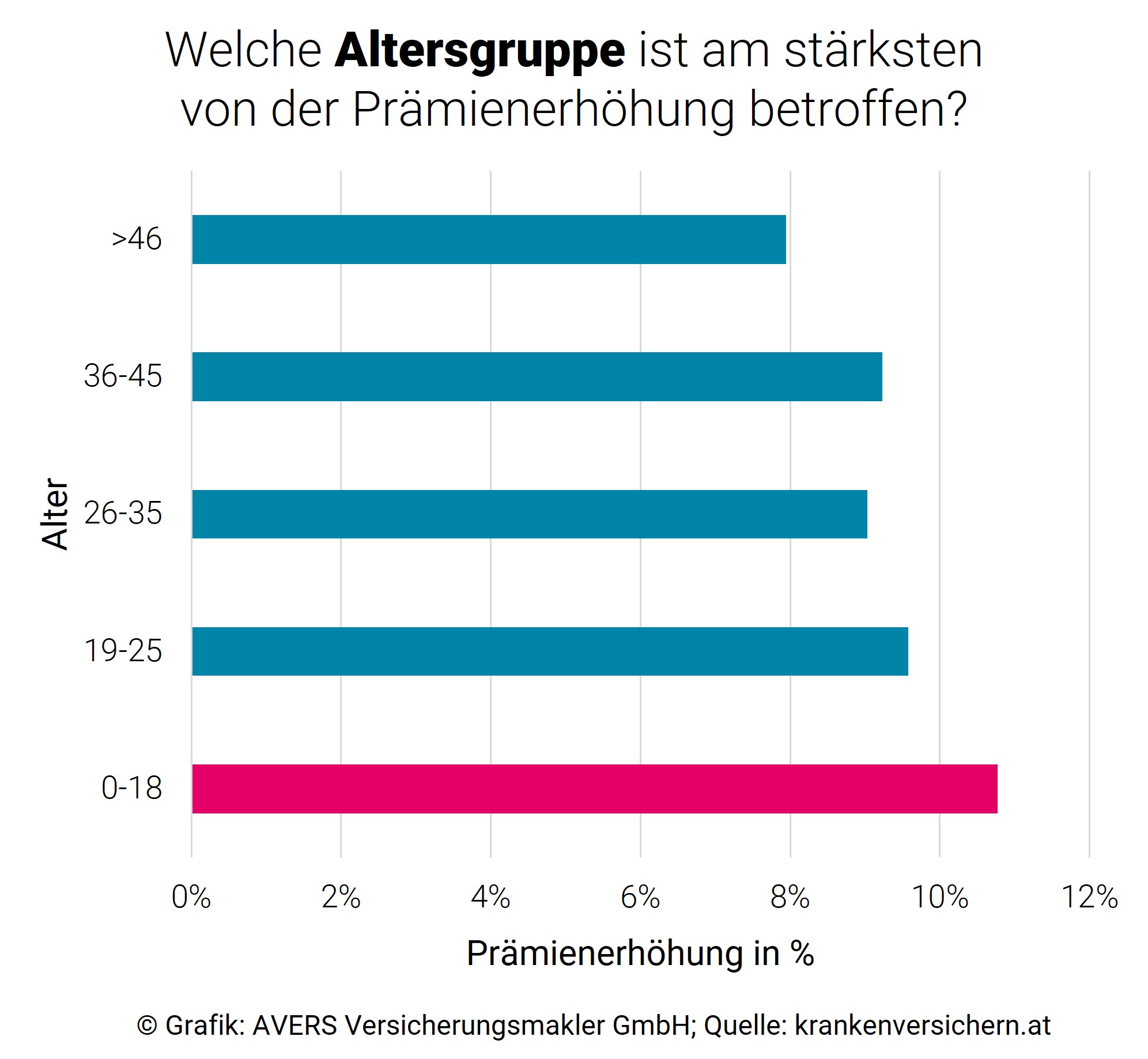 Aktuelle Prämien-Analyse von krankenversichern.at zeigt, dass die Altersgruppe der 0-18-Jährigen am stärksten betroffen ist.