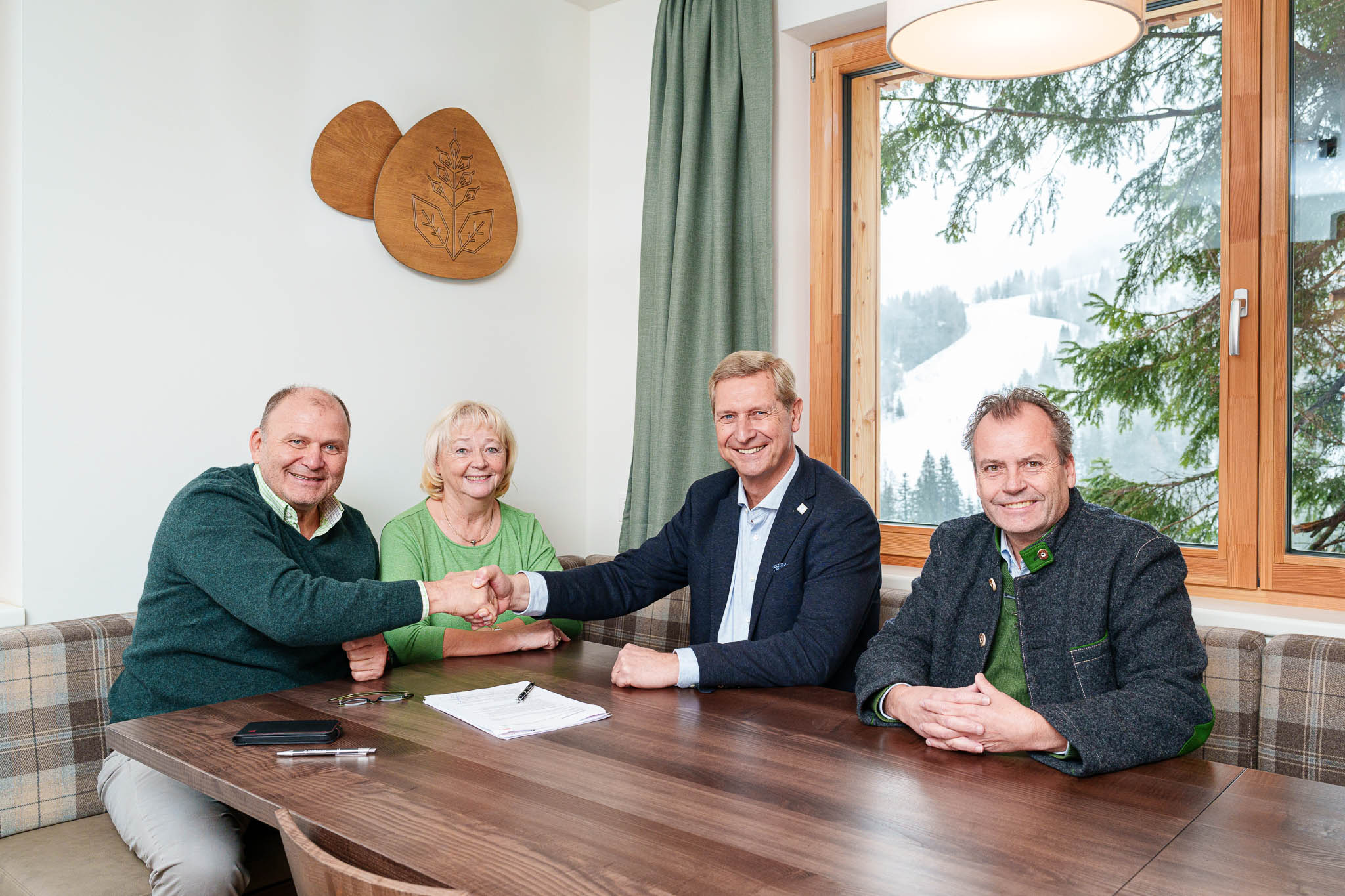 ALPS RESORTS und Riedergarten Tourismus freuen sich über die Kooperation am Nassfeld (v.l.n.r.): Herbert Waldner (Eigentümer und Gründer der Riedergarten Gruppe), Elfriede Pucher (Aufsichtsrätin der Bergbahnen Nassfeld Pramollo AG), Gerhard Brix (CEO ALPS RESORTS), Bernd Rausch (Geschäftsführer der Riedergarten Immobilien Gruppe)