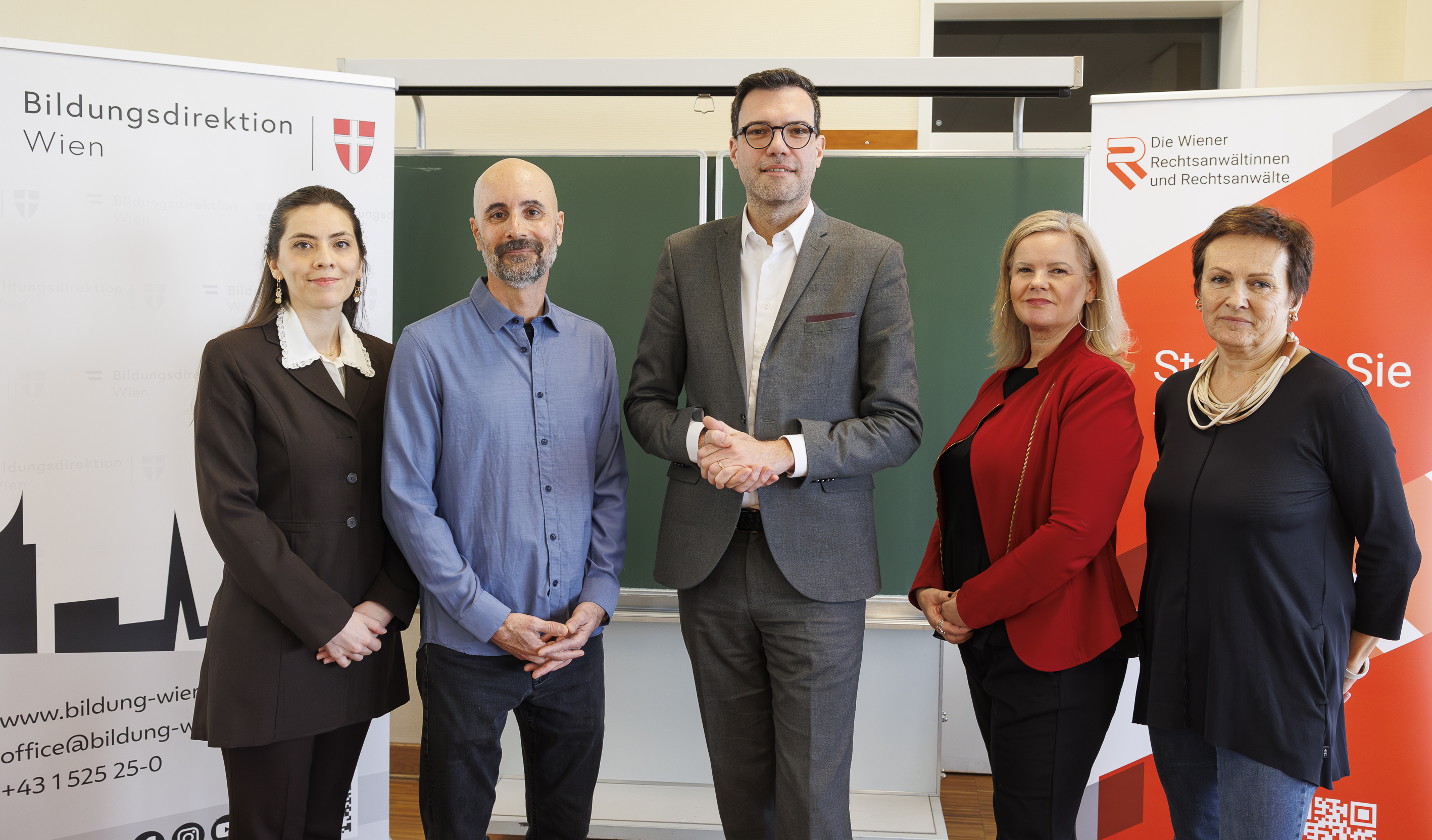 Bildungsdirektion und Rechtsanwaltskammer Wien setzen die Erfolgskooperation „Gewalt & Hass – Prävention an Schulen: die Rechtsanwaltschaft klärt auf!“ 2024 fort.
