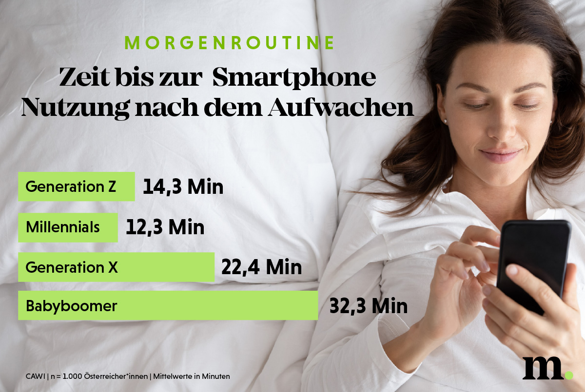 An Verständigungsproblemen beim Telefonieren muss nicht immer eine schlechte Verbindung schuld sein. Zwischen Jung und Alt können solche mitunter auch durch unterschiedliche Nutzungsmuster oder konträre Ansichten hinsichtlich der richtigen Telefon-Etikette auftreten. Einigkeit herrscht generationenübergreifend noch beim potenziellen Verzicht auf das Smartphone. So zeigt eine repräsentative Marketagent-Umfrage, dass die Österreicherinnen und Österreicher problemlos eine Woche lang dem Alkohol (77%), dekorativer Kosmetik (66%) oder sogar Fleisch (56%) entsagen könnten. Anders beim mittlerweile wohl wichtigsten täglichen Begleiter: Lediglich 14% könnten sich vorstellen, 7 Tage lang auf ihr Smartphone zu verzichten. Kein Wunder, wenn man bedenkt, dass dieses Device durchschnittlich 19 Mal pro Tag auf versäumte Anrufe, neue Nachrichten, E-Mails oder Social Media Updates überprüft wird. In der Generation Z fällt der Blick aufs Smartphone mit 32 Mal täglich dabei etwa dreimal so oft wie in der Gruppe der Babyboomer, für die 11 Handy-Checks ausreichen.