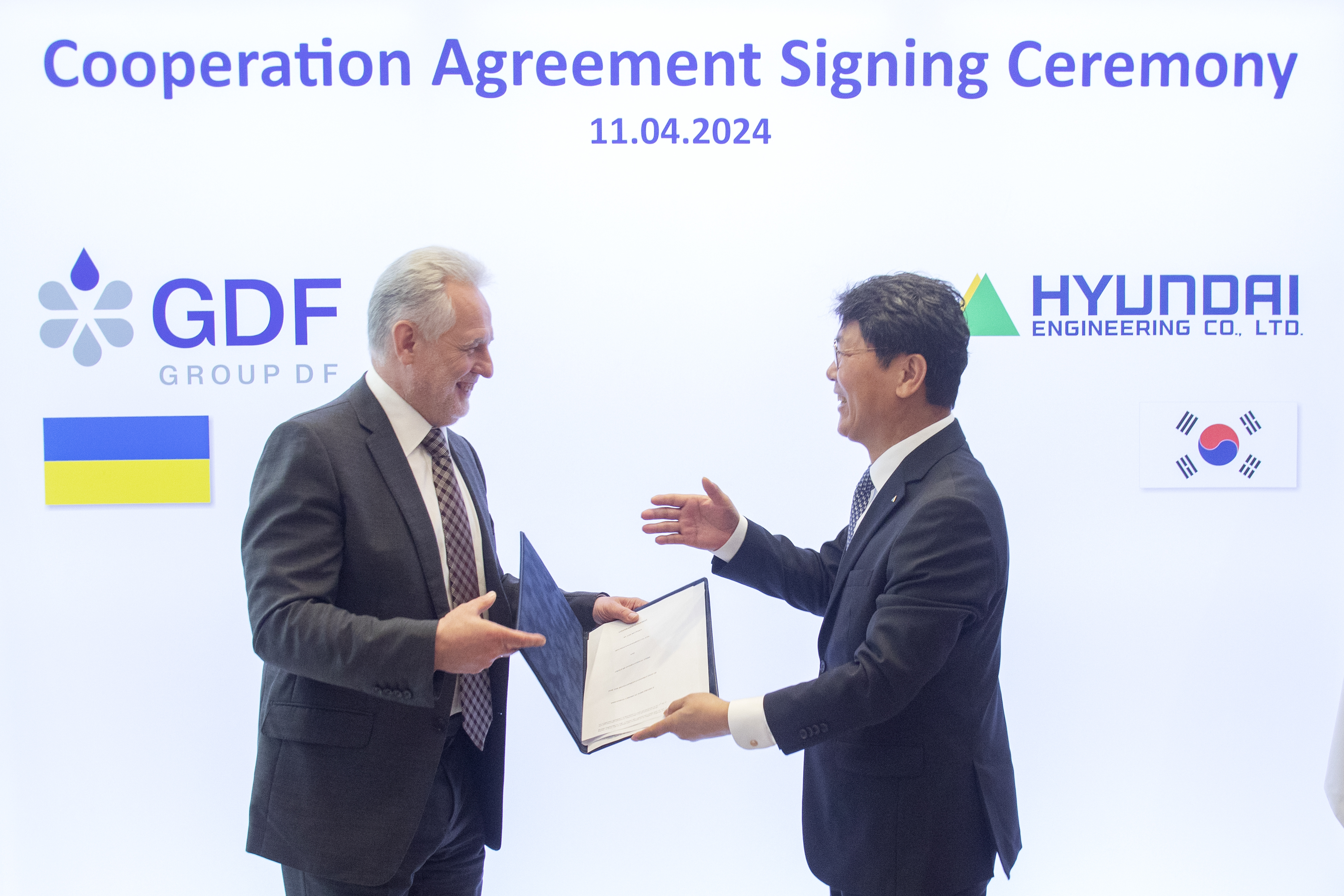 "Unsere Länder haben sehr ähnliche Erfahrungen gemacht. Vor 70 Jahren wurde unsere Wirtschaft durch den Krieg zerstört, und wir haben sie wiederaufgebaut. Aus unserer Erfahrung wissen wir, dass es sehr wichtig ist, Infrastruktur und Industrieanlagen zu bauen. Daher glauben wir, dass die Zusammenarbeit zwischen unseren Unternehmen eine symbolische Bedeutung hat. Wir hoffen, dass unsere praktische Erfahrung im Design und Bau von großen Industrieanlagen in der EU und in Asien in der Ukraine nützlich sein wird," betonte Hyeon-Sung Hong, Geschäftsführer von Hyundai Engineering während der Unterzeichnungszeremonie.