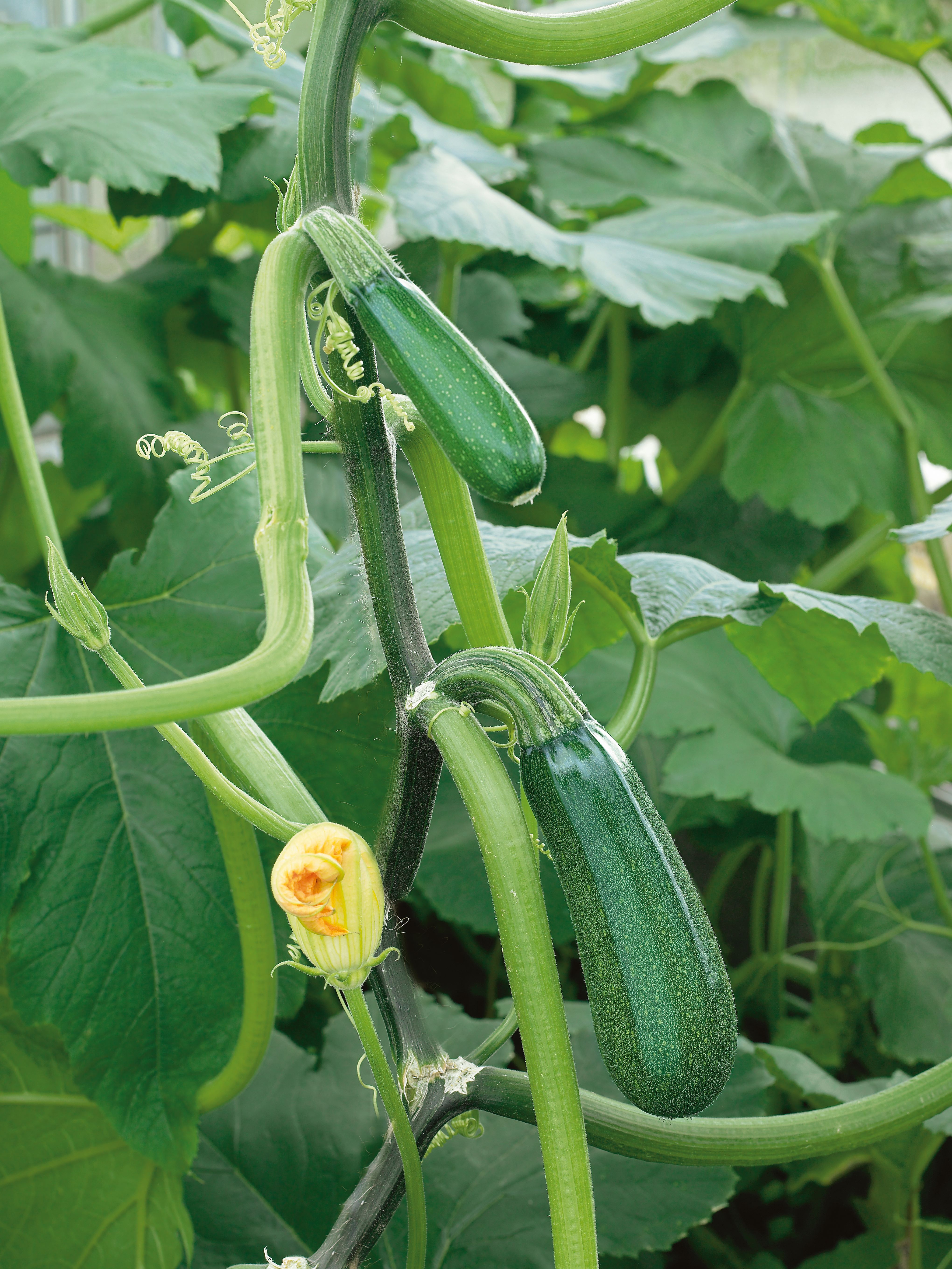 Die Kletterzucchini „Klettermaxi“ wurde zum Gemüse des Jahres gewählt. Die Gemüsespezialität zeichnet sich durch platzsparenden Wuchs, hohen Ertrag und schmackhafte, dunkelgrüne Früchte aus. Das Gemüse des Jahres kann flexibel im Gemüsegarten, im Gewächshaus oder im großen Topf am Balkon gepflanzt werden. Das Besondere an Klettermaxi ist der geringere Platzbedarf, als bei anderen Zucchinisorten. Da man die Pflanze in die Höhe ziehen kann, ist sie auch für Balkon oder Terrasse geeignet. Sobald sich die erste Blüte zeigt, bekommt die Pflanze einen stabilen Stab, ein Gitter oder im Gewächshaus auch Schnüre an denen sie nach oben gebunden wird. Anders als bei Gurken kann Klettermaxi nicht alleine nach oben klettern, sondern muss regelmäßig festgebunden werden. In den heimischen Gärtnereien erhält man ab Ende April junge Pflanzen. Es empfiehlt sich mit dem Aussetzen in das Gemüsebeet bis Mitte Mai zu den Eisheiligen zu warten, damit die Gefahr der Spätfröste gebannt ist.