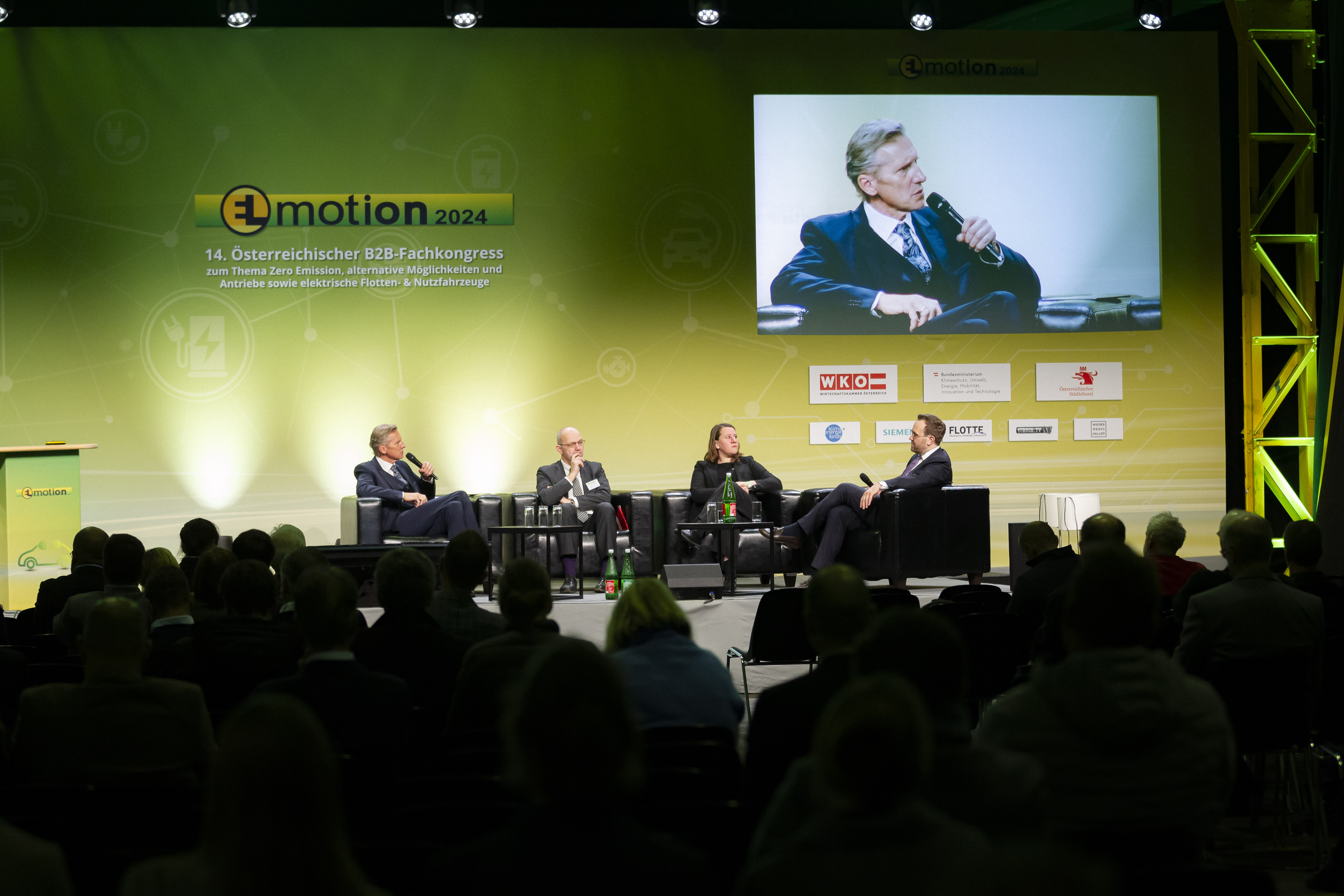 Träger der EL-MOTION sind die Wirtschaftskammer Österreich (WKÖ), das BMK und der Österreichische Städtebund. In der Podiumsdiskussion der Träger wurde auf die Erfolge, Chancen und Herausforderungen rund um die E-Mobilität eingegangen. Allgemein wurde festgehalten, dass sich trotz hoher Wachstumsraten in den letzten Jahren für 2024 ein leichter Einbruch (bis März 2024 ca 10%) bei den Neuzulassungen von E-PKW abzeichnen dürfte.