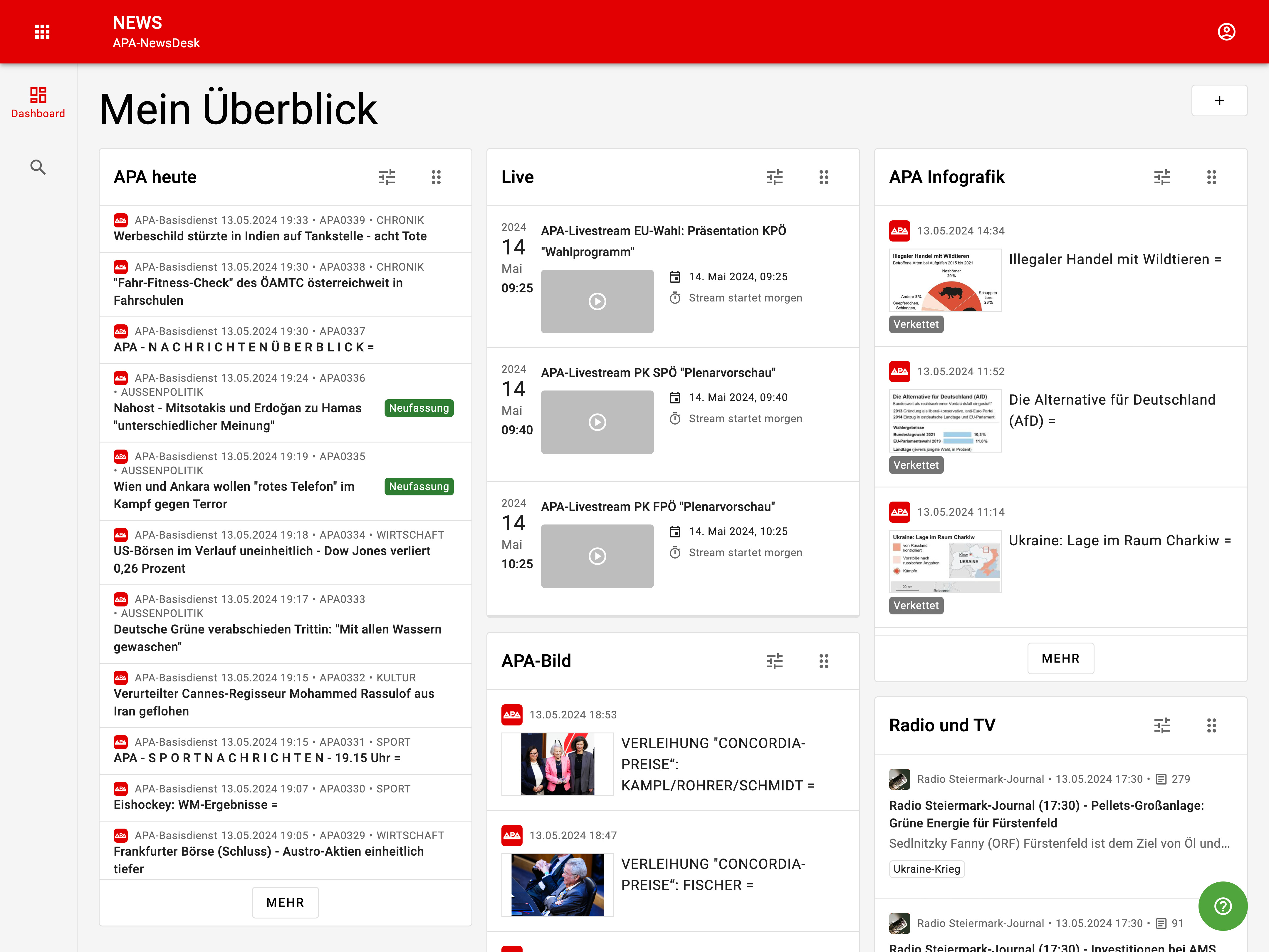 News-Modul: Monitoring-Überblick über alle APA-Inhalte sowie Recherche im APA-Basisdienst und in umfassenden Mediendatenbanken