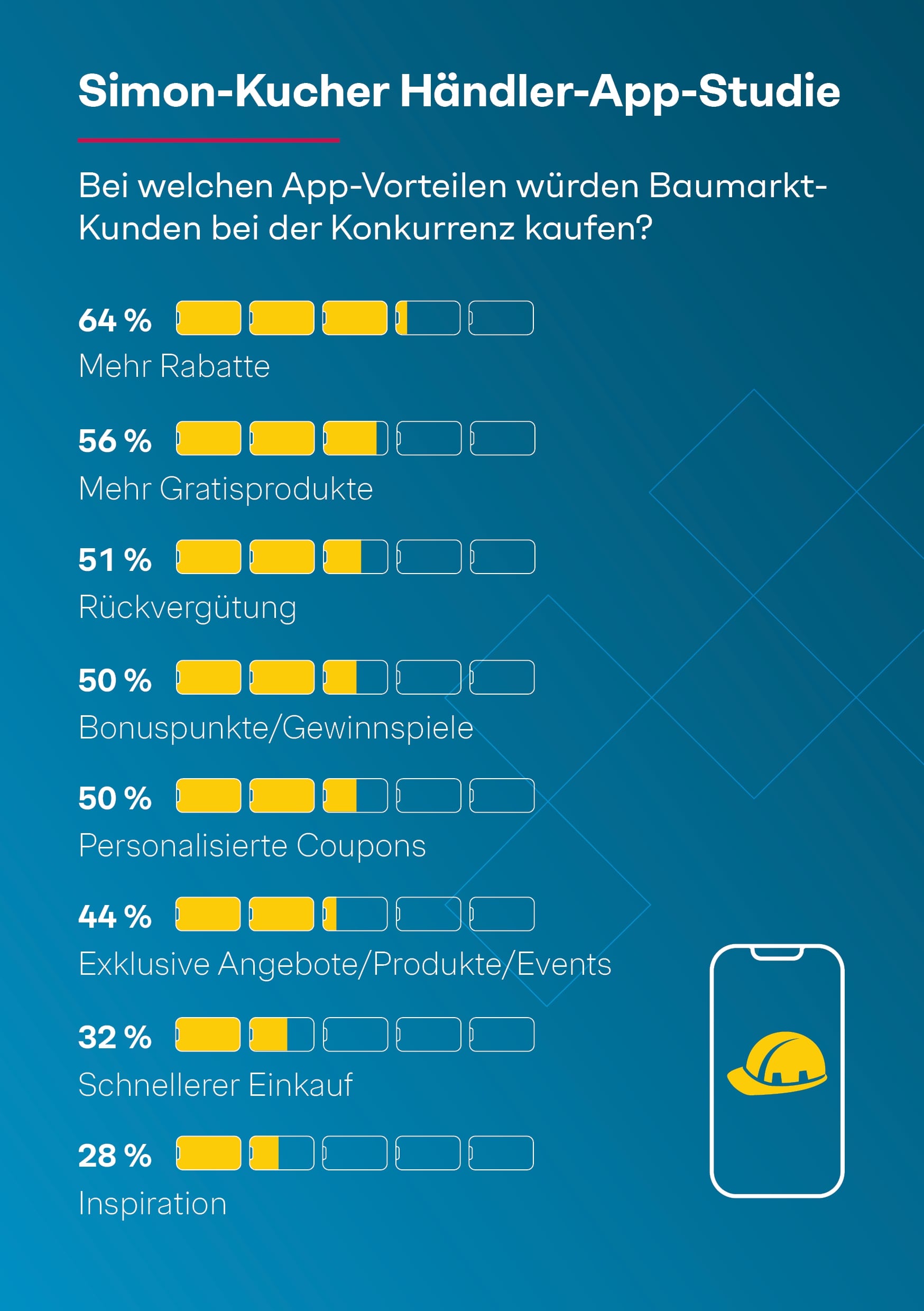 - 64 % testen wegen ihrer Baumarkt-App mehr neue Produkte; bei Rabatten sind es sogar 73 %