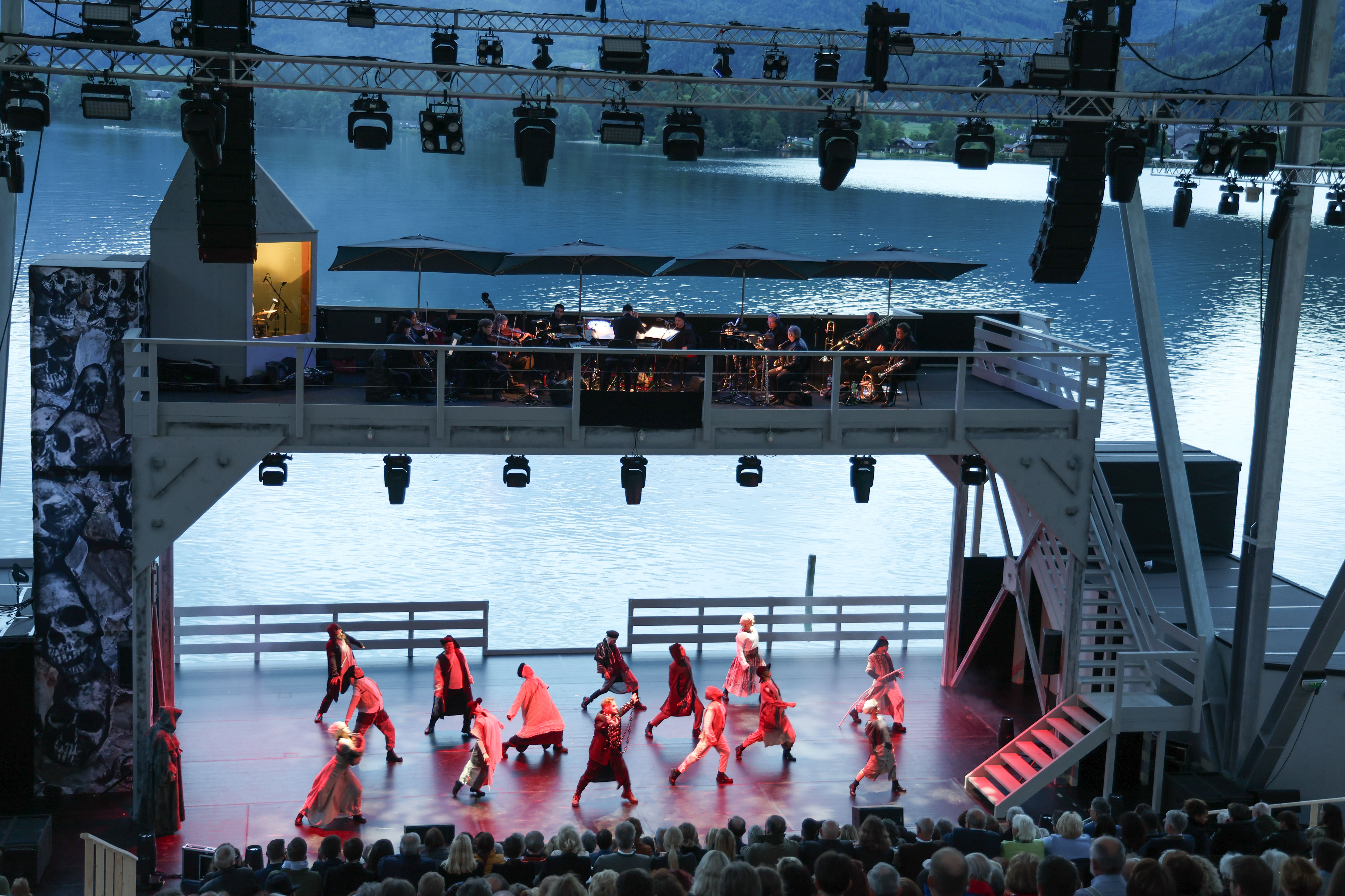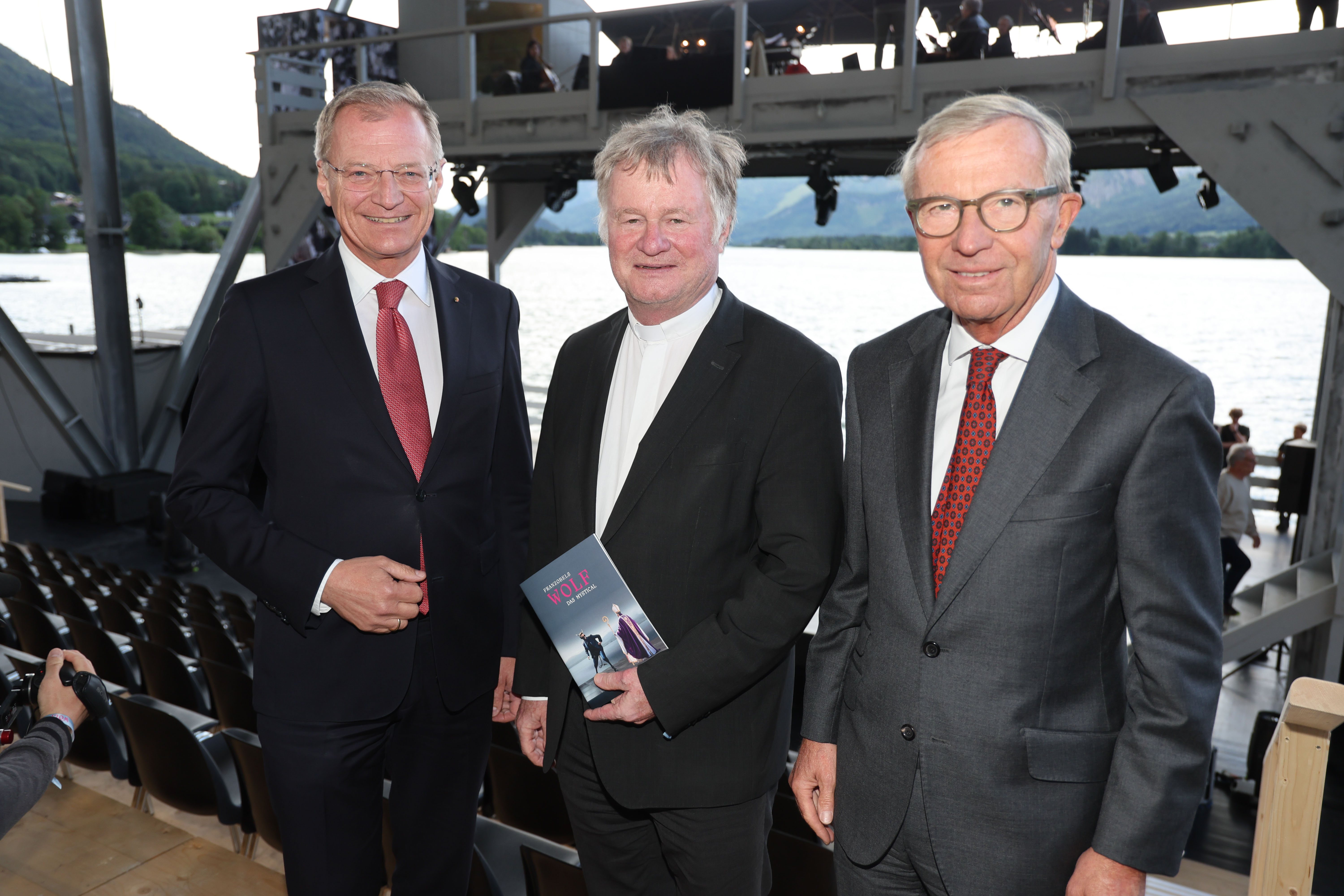 Feierliche Eröffnung der neuen Salzkammergut Seebühne am historischen Ferienhort in Ried am Wolfgangsee. 800 Besucherinnen und Besucher, darunter 300 Ehrengäste aus Geistlichkeit, Gesellschaft, Kultur, Politik und Wirtschaft, reisten am Abend des 23. Mai per Schiff über den See an und genossen Abendstimmung am Fuße des Falkensteins. Höhepunkt war die mit Spannung erwartete Uraufführung von Franzobels WOLF - Das Mystical, eine Mischung aus mystischem Theater und unterhaltendem Musical über das Leben des Heiligen Wolfgang im Rahmen der Feierlichkeiten zum 1100. Geburtstag des Heiligen. Der während des 2. Akts aufsteigende Vollmond komplettierte die mystische Stimmung am Wolfgangsee. Das Stück wurde unter Anwesenheit des Komponisten Gerd Hermann Ortler und des Autors Franzobel bejubelt. Die überdachte Freiluftbühne wird noch bis Ende Juni bespielt.