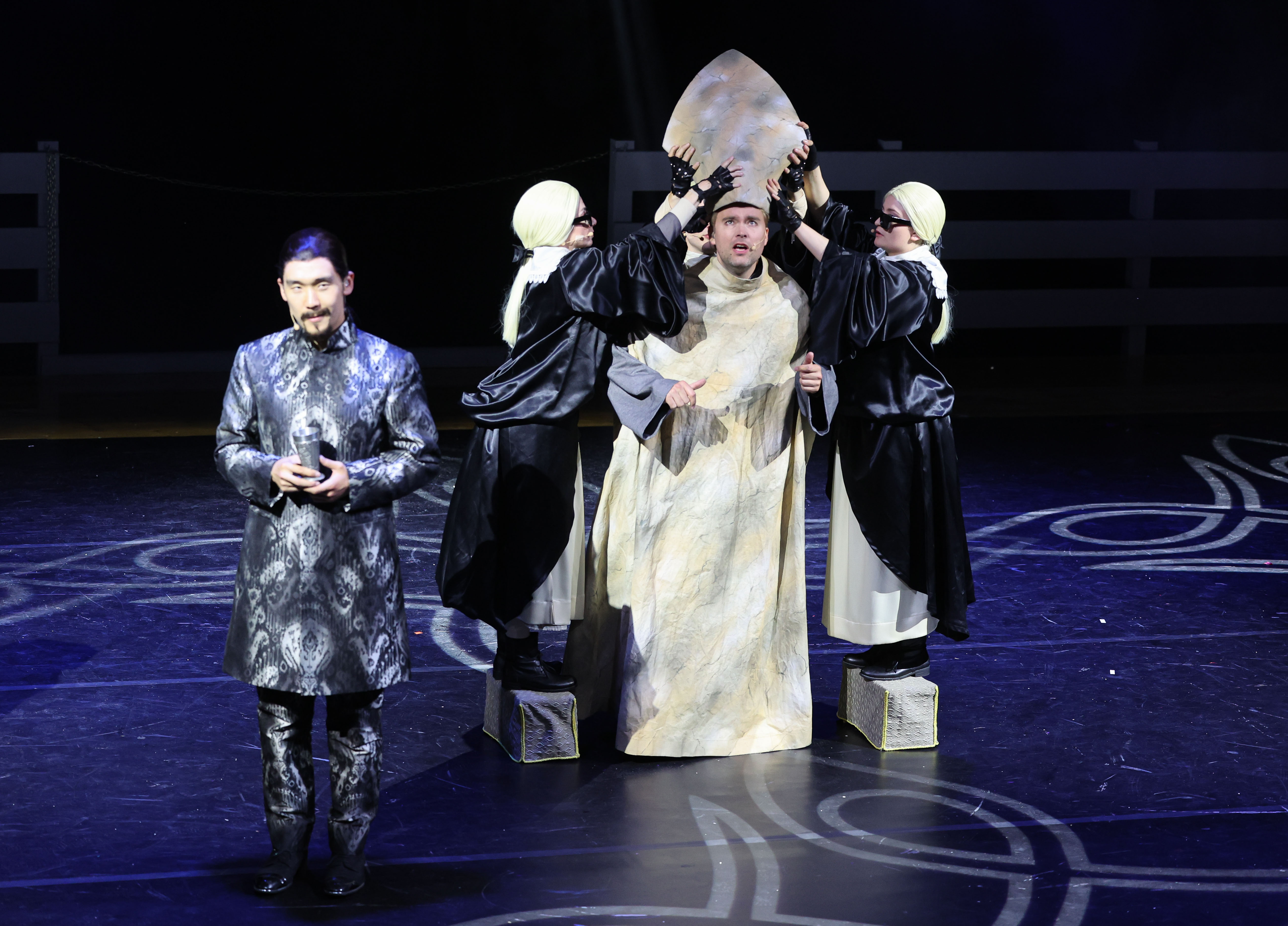 Kirche und Gesellschaft werden kritisch hinterfragt, und der Text integriert kontinuierlich aktuelle Bezüge. Ergänzt wird die Handlung durch die humorvollen und oft scharfsinnigen Kommentare der „Drei Weisen Frauen“, die als postmoderner Kontrast zum mittelalterlichen Geschehen dienen. Diese Elemente, zusammen mit der dynamischen Inszenierung, der beeindruckenden Landschaft und den herausragenden Stimmen, sorgten für einen unvergesslichen Abend im mystischen Musiktheater.