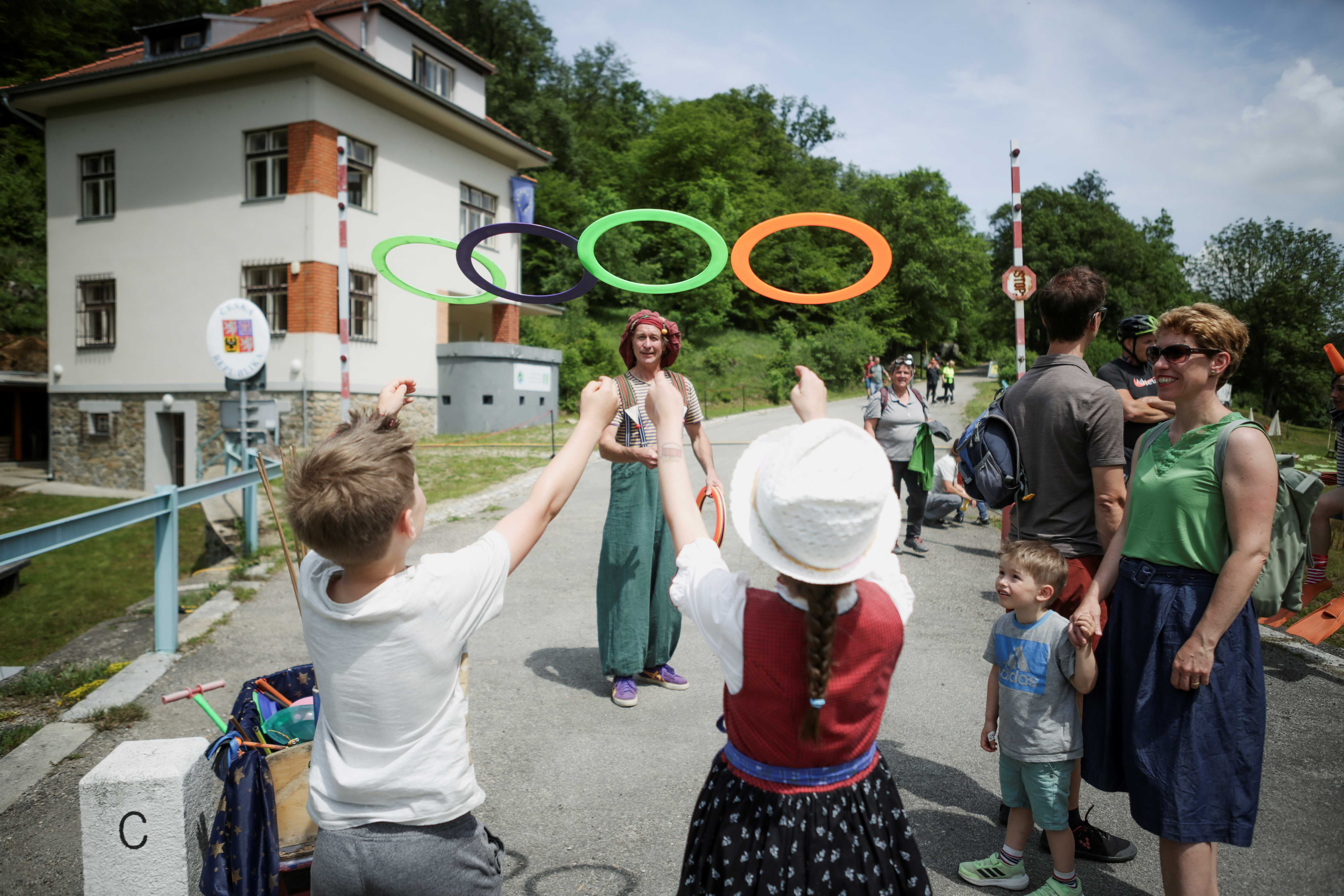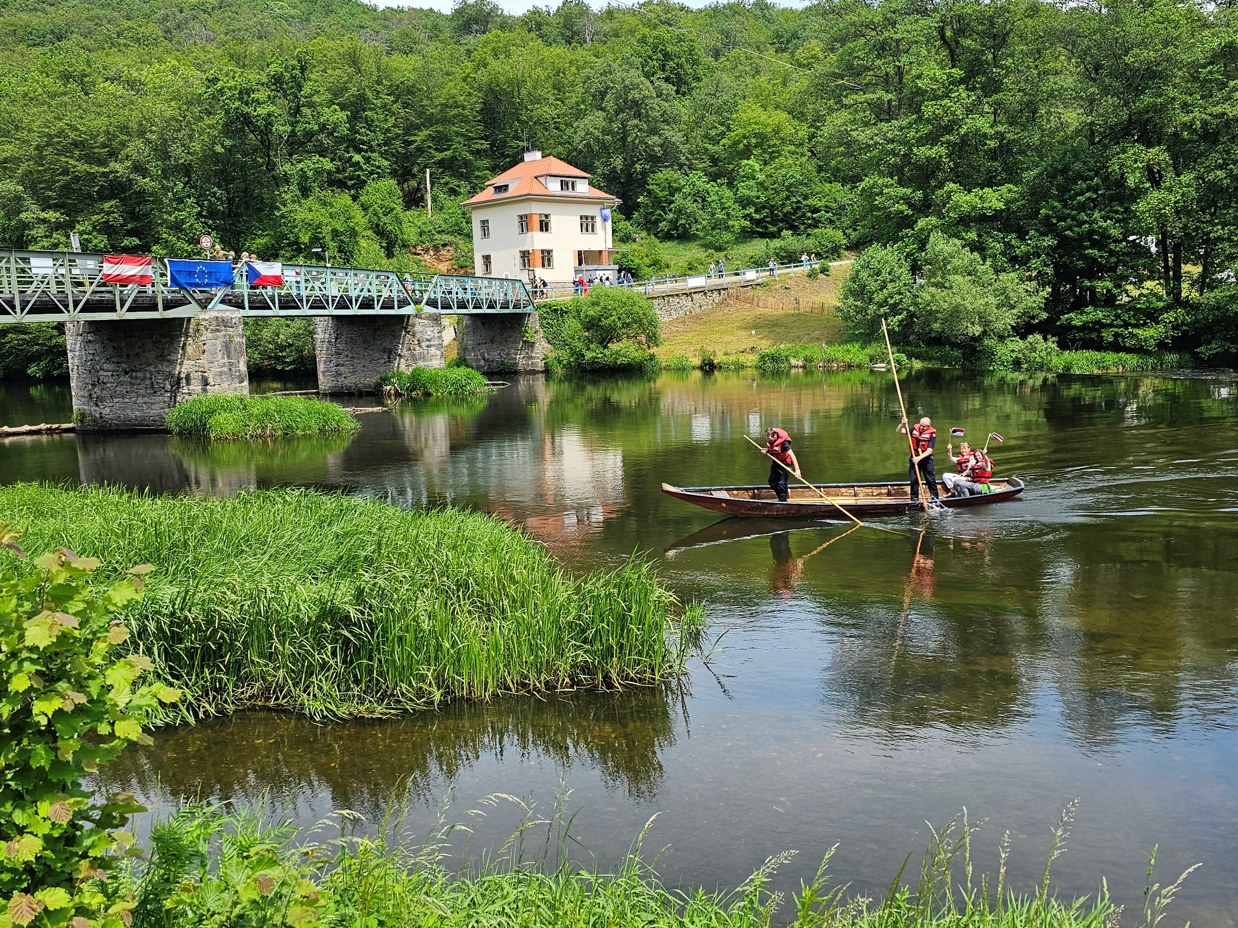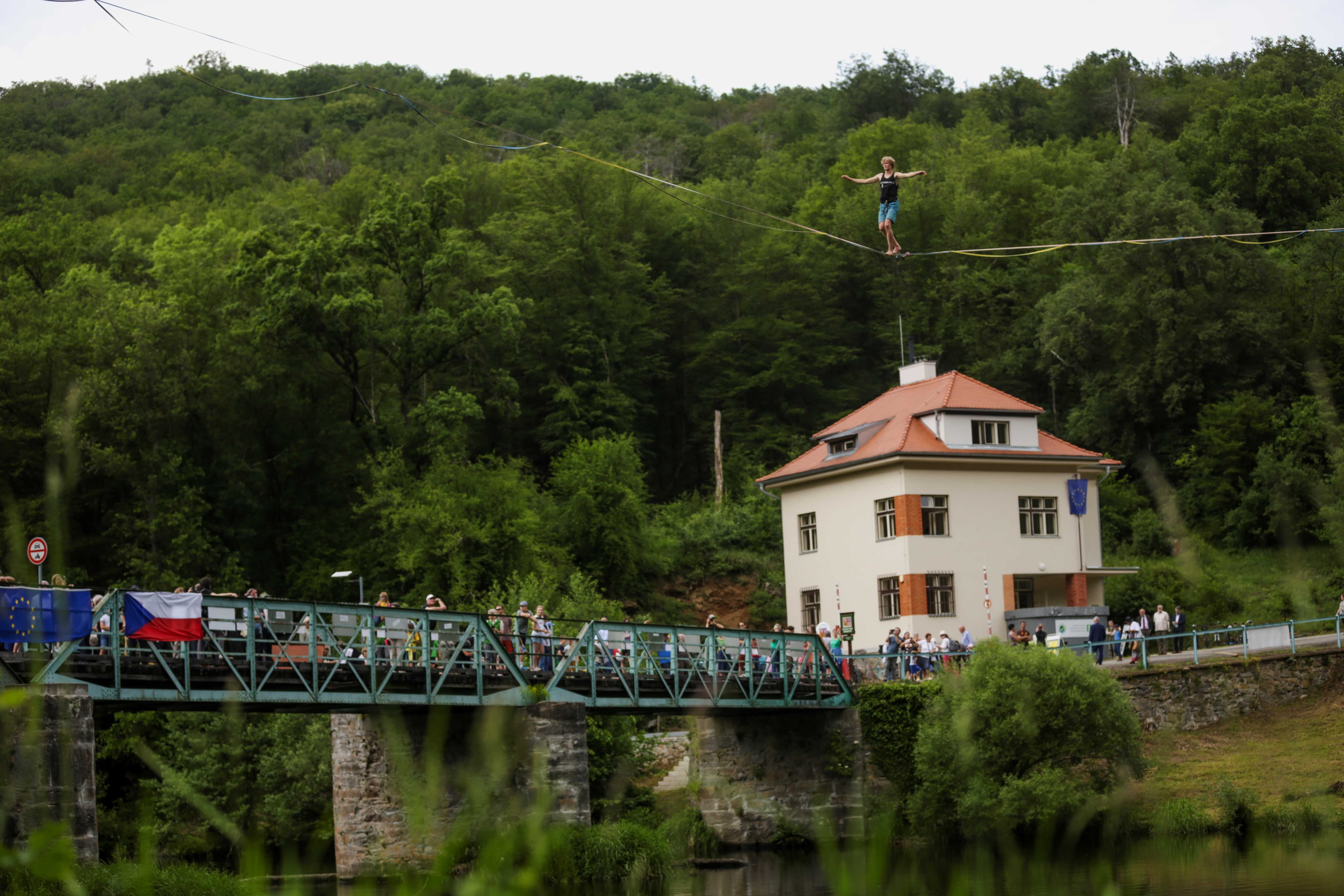 Friedrich Schechtner, Bürgermeister der Stadtgemeinde Hardegg, und die beiden Nationalparkdirektoren Tomáš Rothröckl und Christian Übl konnten bei der Veranstaltung ca. 800 Besucherinnen und Besucher begrüßen, die beim Festakt oder dem umfangreichen Rahmenprogramm mit dabei waren. Musikgruppen aus beiden Ländern spielten auf, Zillenfahrten auf der Thaya rund um die Brücke waren ausnahmsweise möglich, Akrobatik & Clownerie sorgten für Spaß und Unterhaltung. Auch beim gemeinsamen Singen auf der Brücke waren die Gäste aus beiden Ländern begeistert mit dabei. Höhepunkt des Festes waren zwei Seiltänzer der Gruppe Chodimenalajne.cz, die neben der Brücke in 12 m Höhe auf einer Slackline die Thaya überquerten und so die Verbindung zwischen Österreich und Tschechien symbolisch zum Ausdruck brachten.