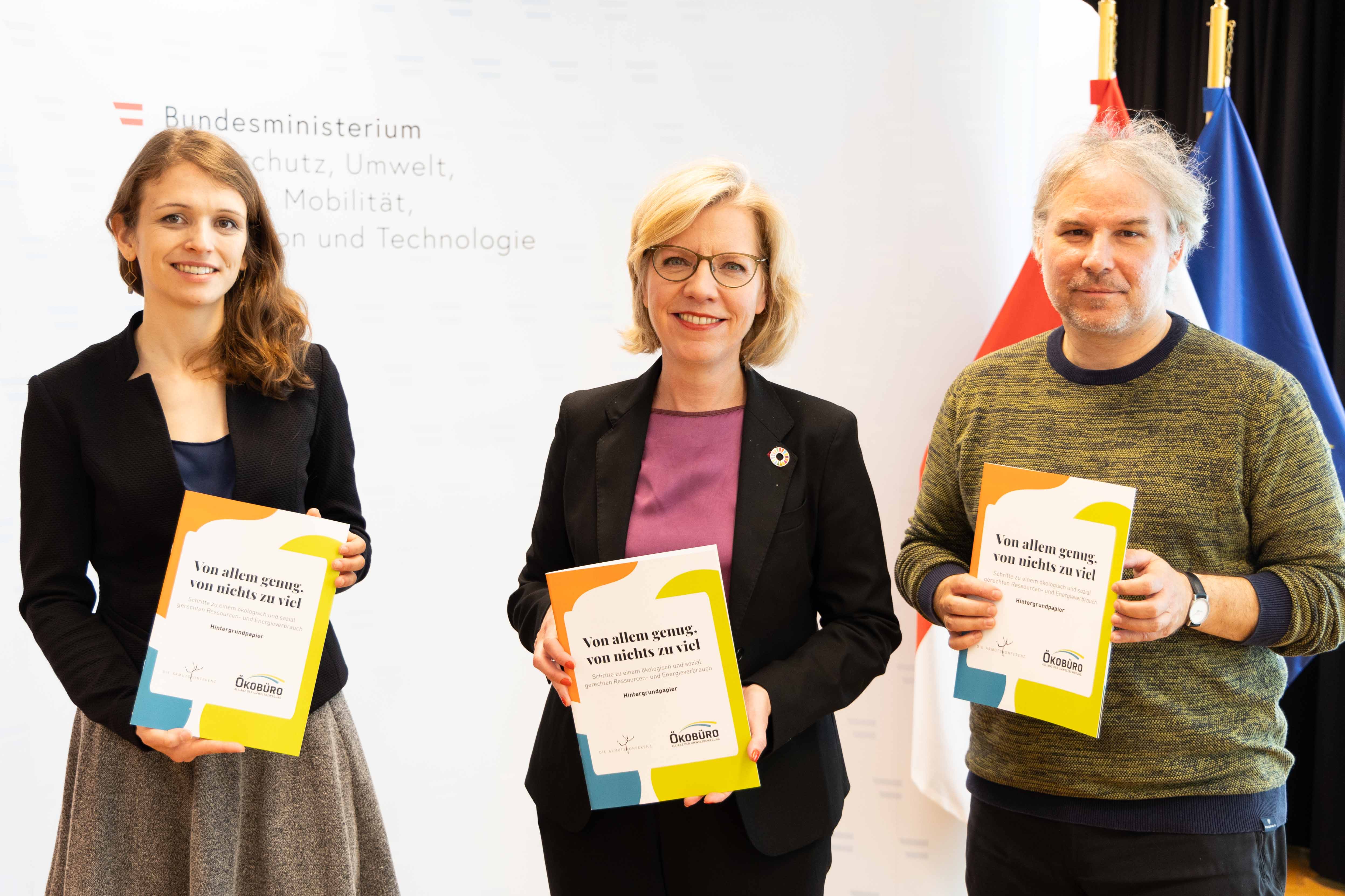 ÖKOBÜRO – Allianz der Umweltbewegung und Die Armutskonferenz haben am Mittwoch gemeinsam einen 10-Punkte-Plan an Bundesministerin Leonore Gewessler sowie an die sozial- und umweltpolitischen Sprecher:innen aller Parlamentsklubs übergeben. Darin fordern sie einen gerechten und ökologischen Umgang mit Ressourcen und Energie. Anhand konkreter Maßnahmen zeigen die beiden Dachorganisationen, wie es gelingen kann, innerhalb ökologischer Belastungsgrenzen eine hohe Lebensqualität und soziale Absicherung für alle zu ermöglichen.