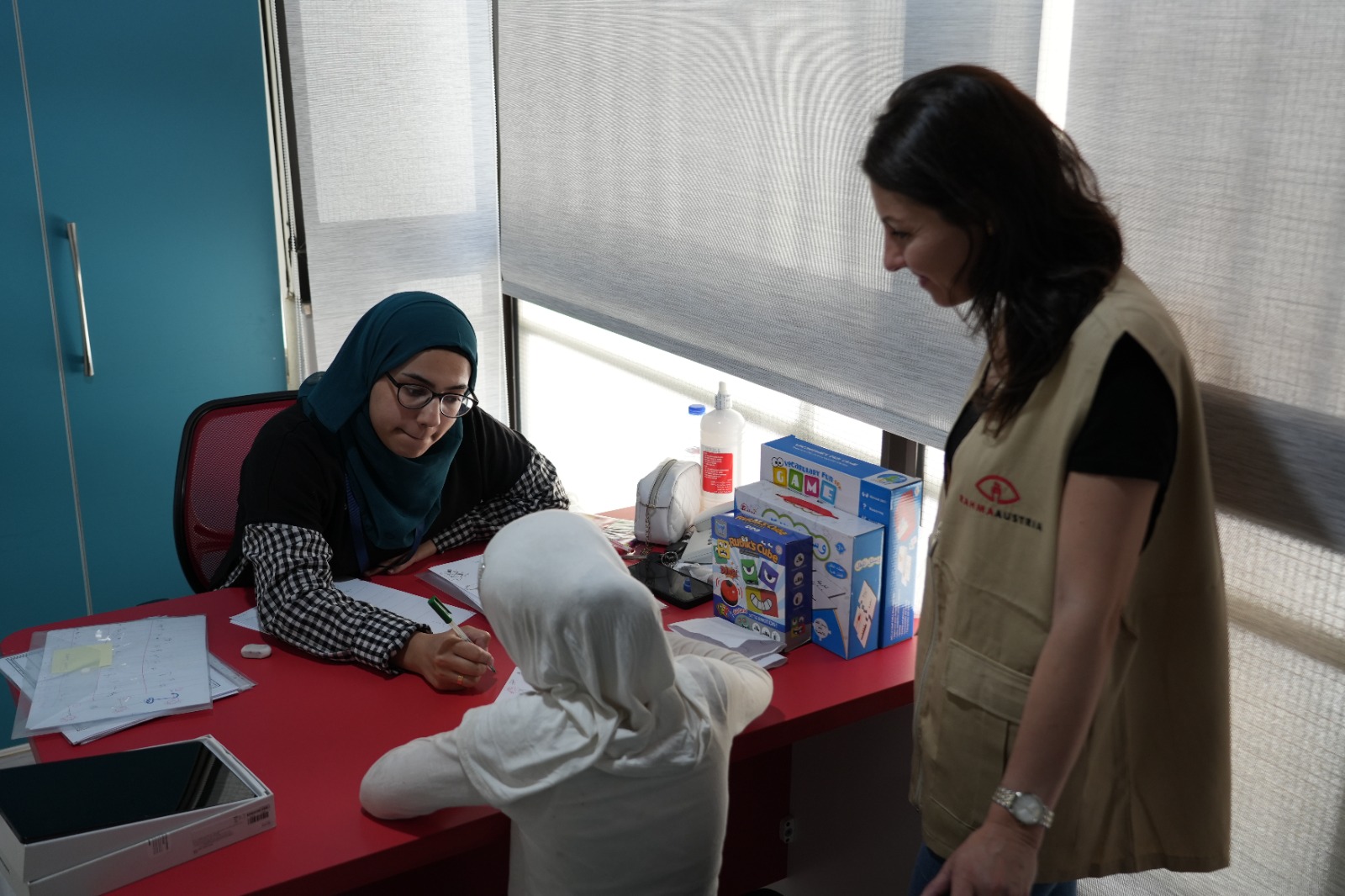 Zwei Logopädietherapeutinnen und eine Direktorin kümmern sich um die Betreuung der Kinder. Die Dienste sind für Kinder aus Flüchtlingslagern kostenlos. Nur private Besucherinnen der dort einheimischen Bevölkerung müssen einen kleinen finanziellen Beitrag leisten.