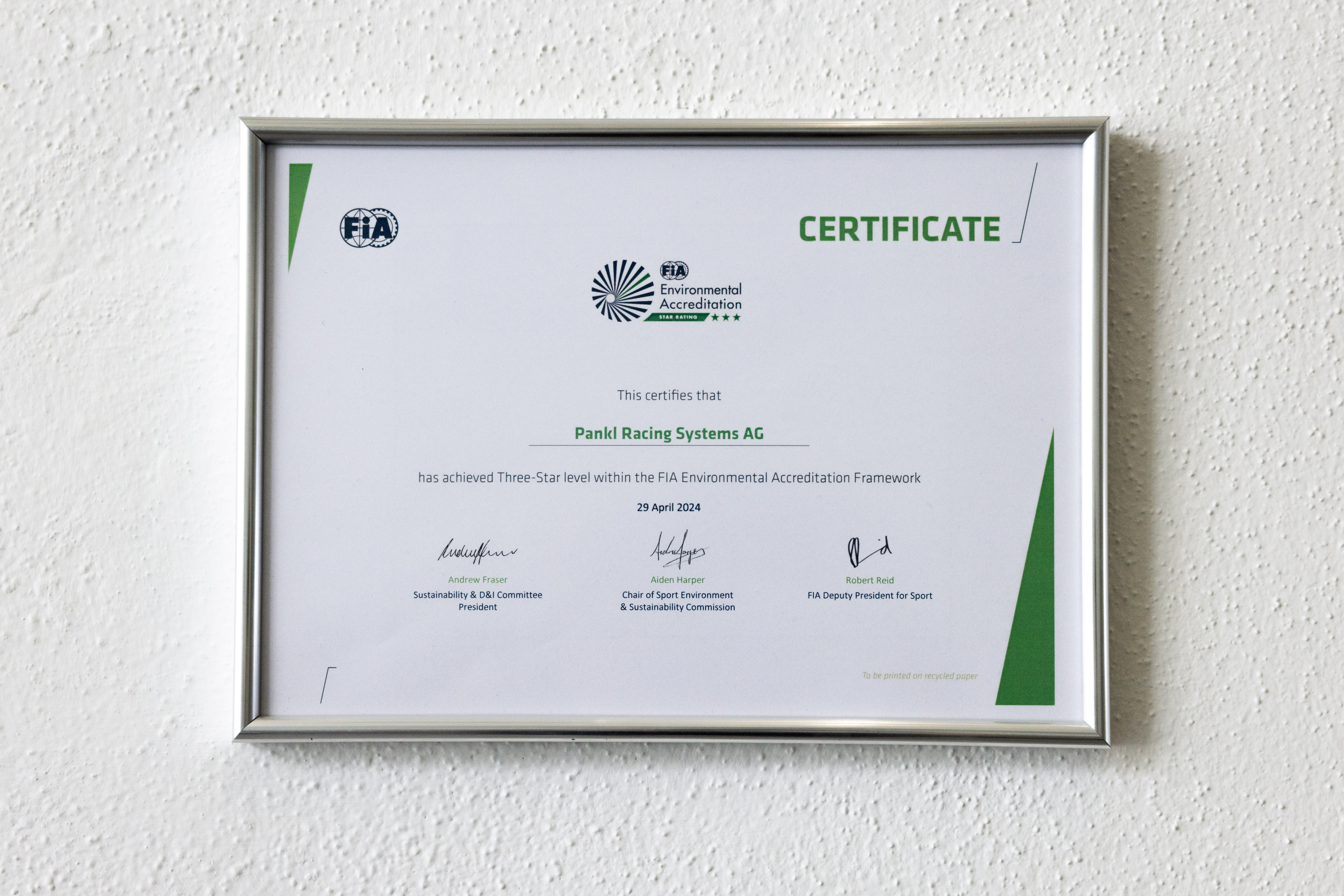 Die kontinuierlichen Bemühungen zur Umsetzung von Maßnahmen in den letzten Jahren haben Pankl die begehrte FIA 3 Sterne Environmental Accreditation – die höchste und anspruchsvollste Nachhaltigkeitszertifizierung des Verbandes – eingebracht. Diese Auszeichnung erfordert die Erfüllung strengster Kriterien und einen erheblichen Aufwand an Ideen, Planung und Umsetzung. Das obersteirische Unternehmen und die FIA als Dachverband zeigen damit, dass Motorsport und Umwelt miteinander vereinbar sind. Diese Maßnahme ist ein großer und guter Schritt in Richtung Nachhaltigkeit und schafft es, dass Unternehmen den Klimaschutz in ihrem Bereich nicht nur erfüllen, sondern neu denken.