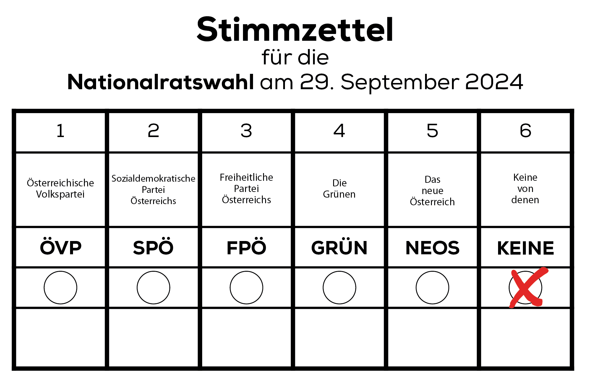 KEINE VON DENEN will bei der Nationalratswahl 2024 bundesweit auf den Stimmzettel. Sie spricht dabei Wähler:innen an, die sich von den Parlamentsparteien nicht vertreten fühlen.