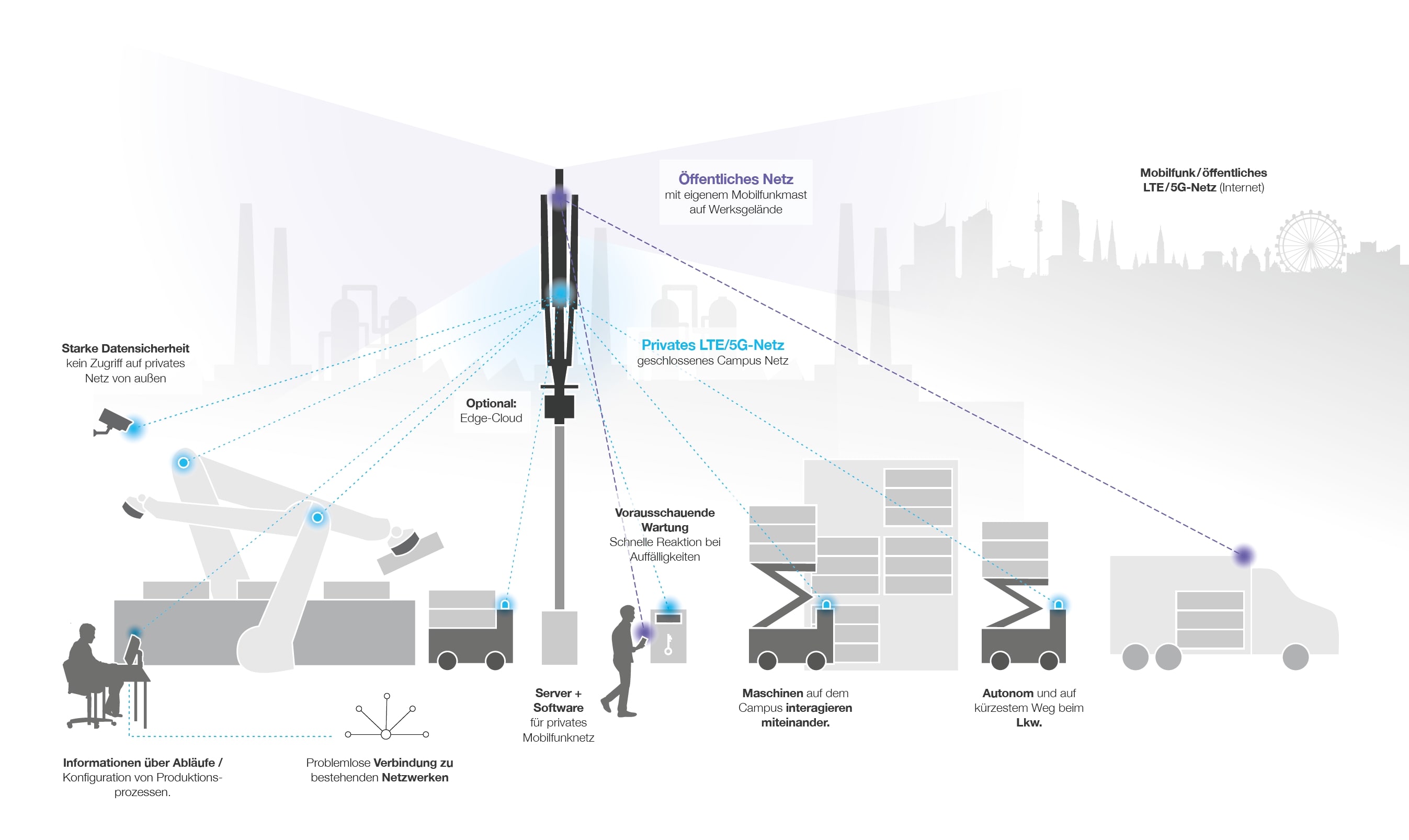 Mit einem eigenen Core Network bleiben alle Firmen-Daten innerhalb des Firmensitzes – und erfüllen strengste Anforderungen an Datensicherheit.