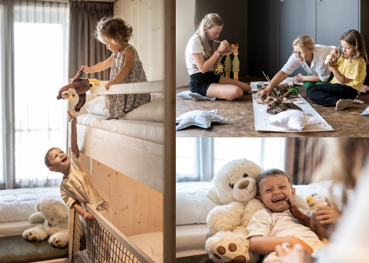 "Als Familie verstehen wir, dass der Familienalltag auch mal chaotisch sein kann. Um dieses Gefühl im gemeinsamen Familienurlaub zu vergessen, braucht es einen Ort, an dem Kinderund Familien willkommen sind und vor allem Kinder einfach sie selbst sein dürfen. Dazu gehört es, die Eltern zu entlasten, indem sie sichergehen können, dass sich ihre Kinder wohlfühlen. Durch unser umfangreiches Betreuungsangebot für Kinder jeder Altersklasse und eine kindgerechte Gestaltung des Gebäudes, die trotzdem auch Erwachsene anspricht, ist es unser Wunsch, dass das Wohlfühlen für die ganze Familie zum Kinderspiel wird und alle Familienmitglieder auf ihre Kosten kommen", erklärt Franziska Sanoner aus der Gastgeberfamilie.