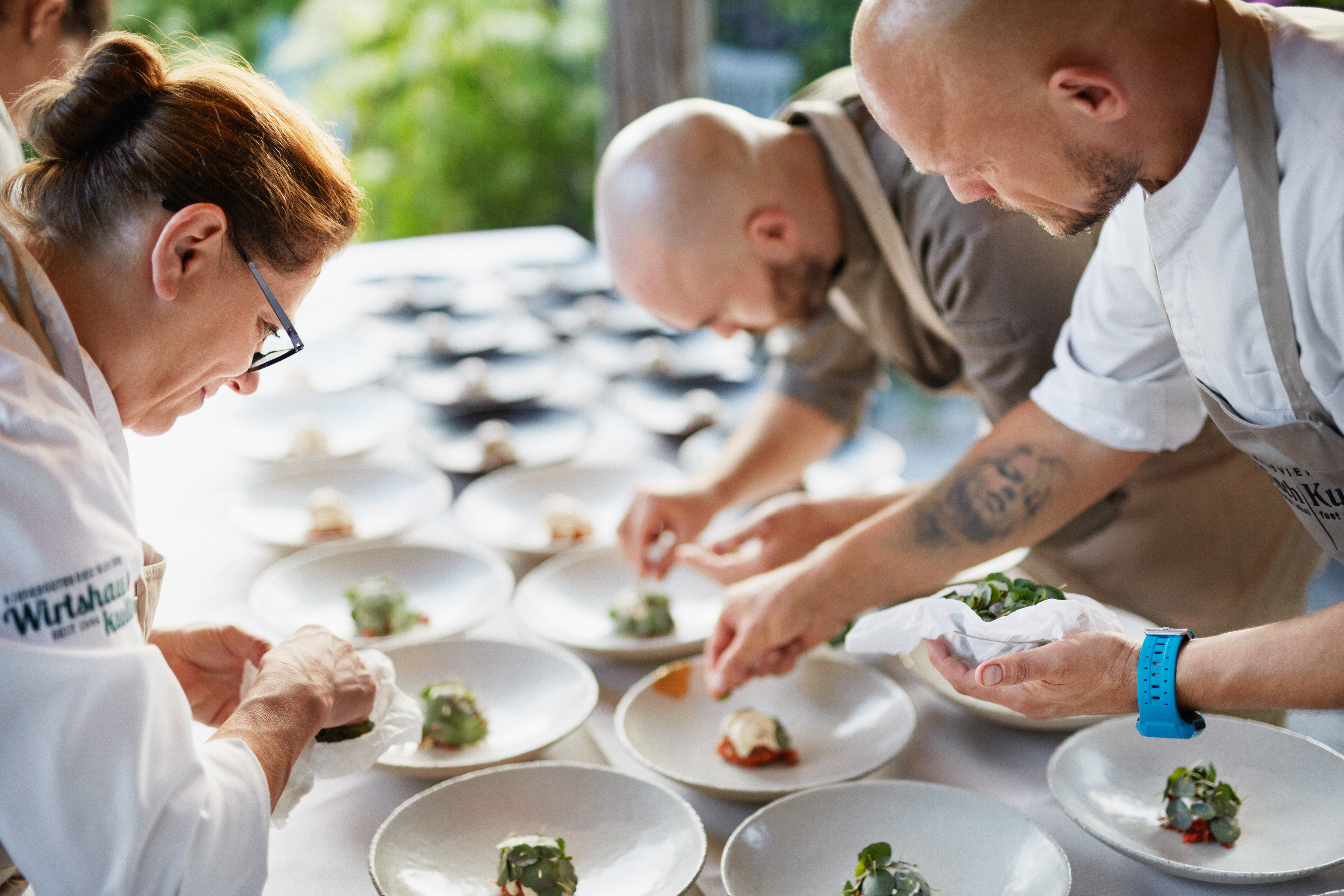 Die Waldviertler TischKultur vereint kulinarische Klassiker auf Hauben Niveau, getoppt mit modernen Facetten der Kunst und Kultur, abgerundet durch die traditionelle Waldviertler Handwerkskunst. Zum Dinner geladen wurde dort, wo tiefe Verwurzelung und natürliches Aufgehobensein ihren Ursprung haben: unter freiem Himmel, umgeben von Bäumen und Wäldern, am Waldesrand, im Johannisgartl von Doris Schreiber. Sie deckte die Tische mit natürlichen Elementen und stellte damit die Verbindung zur einzigartig regionalen und tief verwurzelten Kochkunst der drei Protagonist:innen her. Wohlfühlen und Genießen in naturnaher Kulisse - das ist das Motto dieser neuen Veranstaltungsreihe, die von den lokalen Akteuren im Waldviertel gemeinschaftlich ins Leben gerufen wurde, um die Tradition hochzuhalten und liebevoll neu interpretiert weiterzugeben.