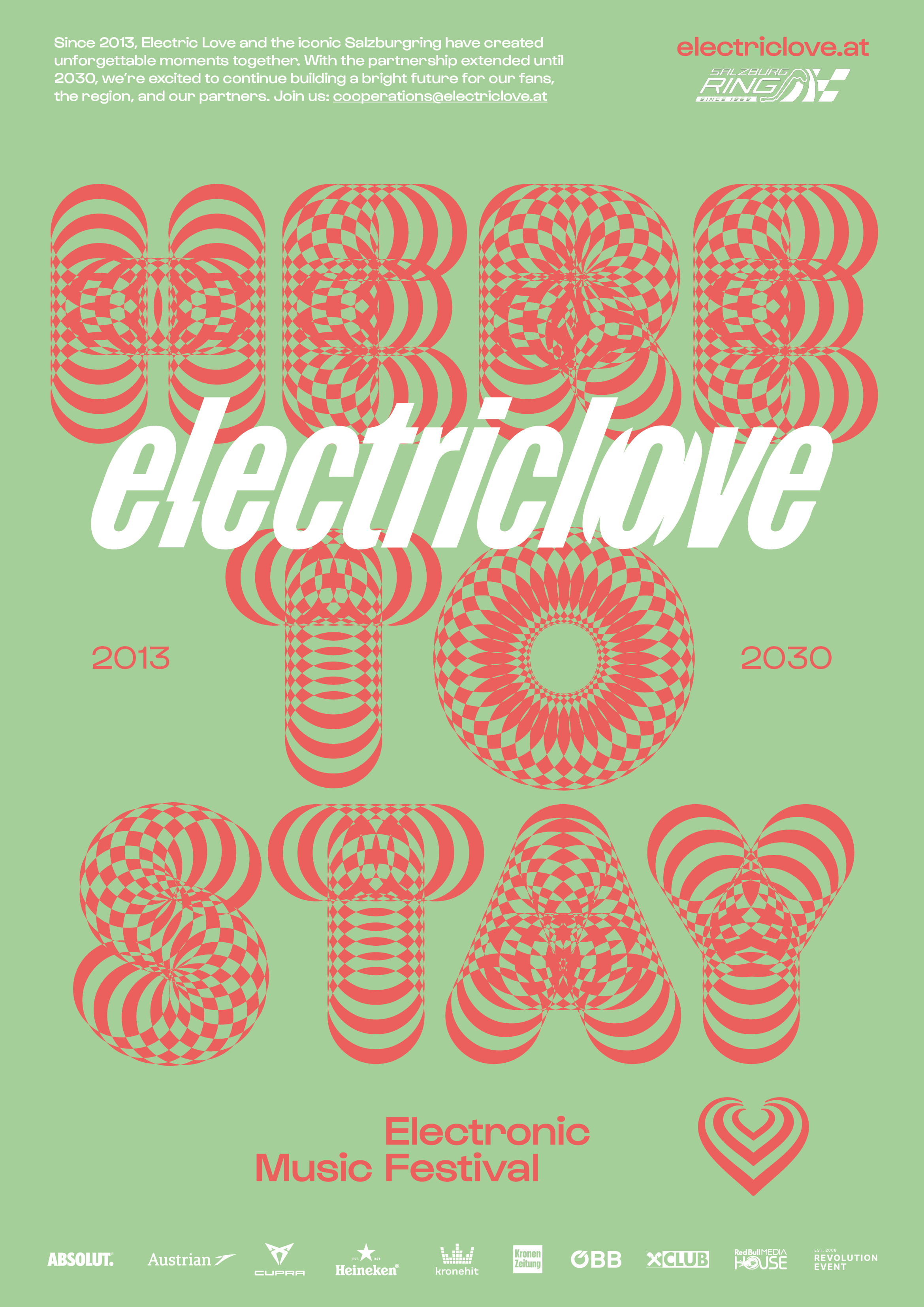 Das Electric Love Festival gibt die Verlängerung des Vertrags mit dem Salzburgring als Veranstaltungsort für sechs weitere Editionen bekannt. Der Vertrag, der nun bis einschließlich 2030 gilt, ermöglicht es, das Festival weiterhin in der malerischen Fuschlseeregion durchzuführen und durch die Planungssicherheit qualitativ und nachhaltig zu entwickeln.