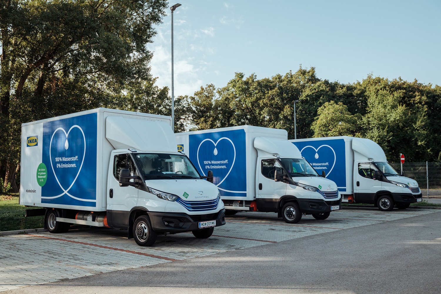 Bis zum Jahr 2030 will IKEA auf globaler Ebene die absoluten Treibhausgasemissionen um 50 Prozent reduzieren und bis 2050 das Netto-Null-Ziel erreichen (im Vergleich zum Geschäftsjahr 2016). Das Unternehmen hat in Österreich bereits wichtige Meilensteine auf diesem Weg erreicht. Seit mittlerweile drei Jahren beliefert das Unternehmen hierzulande einen Großteil seiner Kund:innen im städtischen Bereich elektrisch und damit emissionsfrei - in der Bundeshauptstadt Wien bereits zu 100 Prozent. Zu Beginn des abgelaufenen Geschäftsjahres, im Oktober 2023, erweiterte IKEA Österreich zudem seine emissionsfreie Lieferung als weltweit erstes Land mit wasserstoffbetriebenen Fahrzeugen. Österreichweit liegt der Anteil der emissionsfreien Lieferungen aktuell bei etwa 60 Prozent. Durch den Einsatz seiner Elektro-Truck-Flotte sparte IKEA im abgelaufenen Geschäftsjahr in diesem Bereich rund 800 Tonnen CO2e ein. Mit dem flächendeckenden Einsatz von emissionsfreien Transporttechnologien wie der Wasserstoff-Brennstoffzellen-Technologie sollen jährlich weitere 1.500 Tonnen an CO2e eingespart werden.