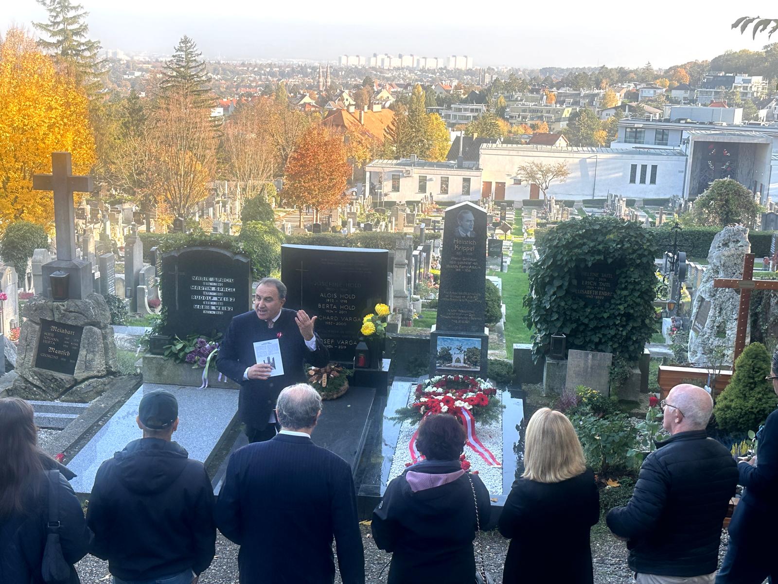 "Heute vor 101 Jahren, am 29.10.1993, wurde die Republik Türkei von Atatürk als säkulare, sozialdemokratische Republik ausgerufen, in der Stalin, Mussolini und Hitler lebten", so die Türkische Kulturgemeinde in Österreich (TKG), und weiter: "Der 101. Jahrestag der Gründung der Republik Türkei wurde mit einer Gedenkfeier vor dem Denkmal des Atatürk-Bildhauers Heinrich Krippel in Wien begangen, nicht nur weil wir es vor einem Jahr hier auf eigene Kosten eingeweiht haben, sondern weil Krippel und viele hunderte österreichische Fachleute und Wissenschaftler, wie der berühmte österreichische Architekt Clemens Holzmeister, die gesamte Hauptstadt Ankara mit allen Ministerien, das türkische Parlament und sogar das erste türkische Bundespräsidialamt als Architekt gestaltet haben. Wir sind diesen großen Söhnen und Töchtern Österreichs dankbar, die durch das Vertrauen Atatürks in die ÖsterreicherInnen die säkulare Republik Türkei mit aufgebaut haben, weil es eine moderne türkische Republik war und als gute Erinnerung an die erste Waffenbrüderschaft und natürlich weil Österreich damals viele seiner Fachkräfte ins Ausland geschickt oder verloren hat und die moderne Atatürk-Türkei uns mit großer Liebe und Respekt aufgenommen hat. Und die Atatürk-Denkmäler von Heinrich Krippel (1883-1945) , die er in seinem Atelier in der Auhofstrasse im 13. Wiener Gemeindebezirk fertiggestellt hat, stehen heute in Ankara, Samsun, Konya, İzmir, İstanbul und werden jedes Jahr mit Krippels Unterschrift von Millionen Menschen, die immer mehr werden, an den wichtigsten Tagen der Republik als erste und mit Respekt versammelt. So auch heute, am 29.10.2024, überall in der Türkei. Und wir versammeln uns im 13. Bezirk Ober St. Veit Friedhof vor dem Denkmal Henrich Krippels".