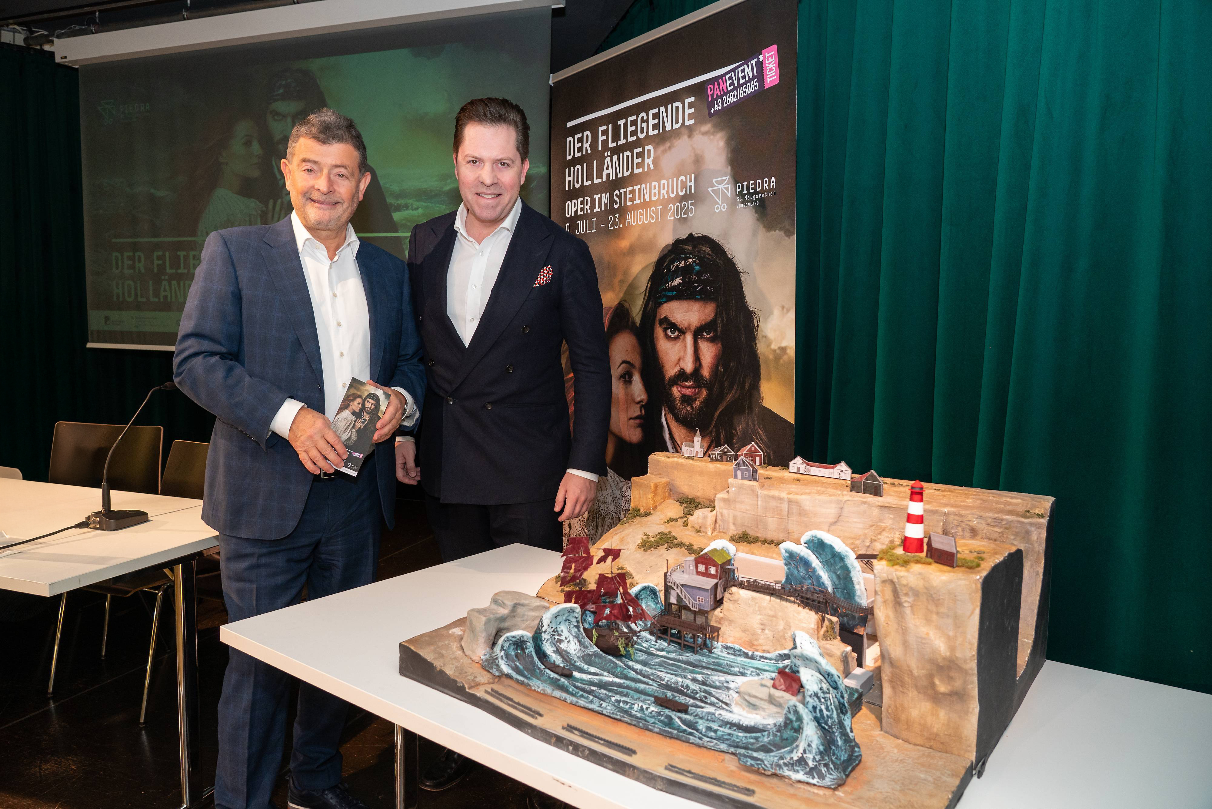 ... so lautet der Untertitel der 1843 uraufgeführten vierten Oper Richard Wagners. Als einziges Werk aus seiner frühen Schaffensphase wird es bis heute regelmäßig gespielt und ist für viele Wagners populärstes Werk überhaupt. Das Stück erzählt die mystische Geschichte eines verwunschenen Seemanns, der verdammt ist, die Weltmeere zu besegeln, bis er die Liebe einer reinen, unschuldigen Frau gewinnt. Mit einer Dauer von rund zweieinhalb Stunden zählt es zu Wagners kürzesten Werken. In St. Margarethen wird Philipp M. Krenn Regie führen, der bereits große Erfahrung in der Inszenierung von Werken Wagners sowie in Stücken für große Bühnen und Festivals aufweist und 2025 unter anderem auch einen „Parsifal“ bei den Festspielen in Erl präsentieren wird. Krenn über die Wagner-Inszenierung in der kommenden Saison: „Die Oper im Steinbruch und ,Der fliegende Holländer‘ sind für mich eine ideale Kombination - umso mehr freut es mich, dass das Stück jetzt in dieser besonderen Location aufgeführt wird. Dieses Werk beeindruckt mich in seiner Gesamtheit, denn es beinhaltet Kraft, Wut und Verzweiflung genauso wie Sehnsucht, Romantik und Liebe, gespickt mit etwas Humor. Kurzum: Es ist eine große Liebesgeschichte mit romantischer Musik in einem einzigartigen Ambiente. Wir werden packende zweieinhalb Stunden Musiktheater im besten Sinne erleben, gepaart mit Naturgewalten und herausragender Technik.“