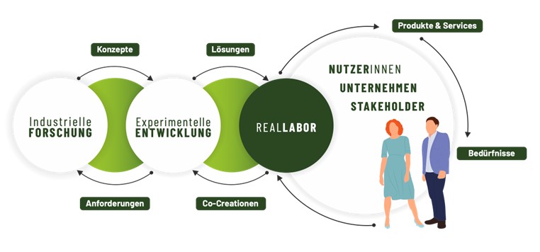 Frei nach dem Motto „Das echte Leben ist der beste Test“ werden bedürfnisorientiert neue Lösungen unter wirklichen Bedingungen entwickelt und optimiert: ganz nah an den Anwenderinnen und Anwendern, in Zusammenarbeit mit Forschung und Unternehmen. Diese Wirkungskette fördert regionalen Kompetenz- und Wissensaufbau, und führt zu abgestimmtem und effizientem Einsatz der technologischen Ressourcen und fachlichen Expertise. 22 Projektpartner aus Wissenschaft, Energiesektor, Mobilitätsektor, Automatisierung sowie Inklusion & Fortbildung arbeiten dabei im Reallabor Waldviertel zusammen, um eine zu 100% erneuerbare Energieversorgung zu ermöglichen: zu jeder Zeit, an jedem Tag, das ganze Jahr hindurch.