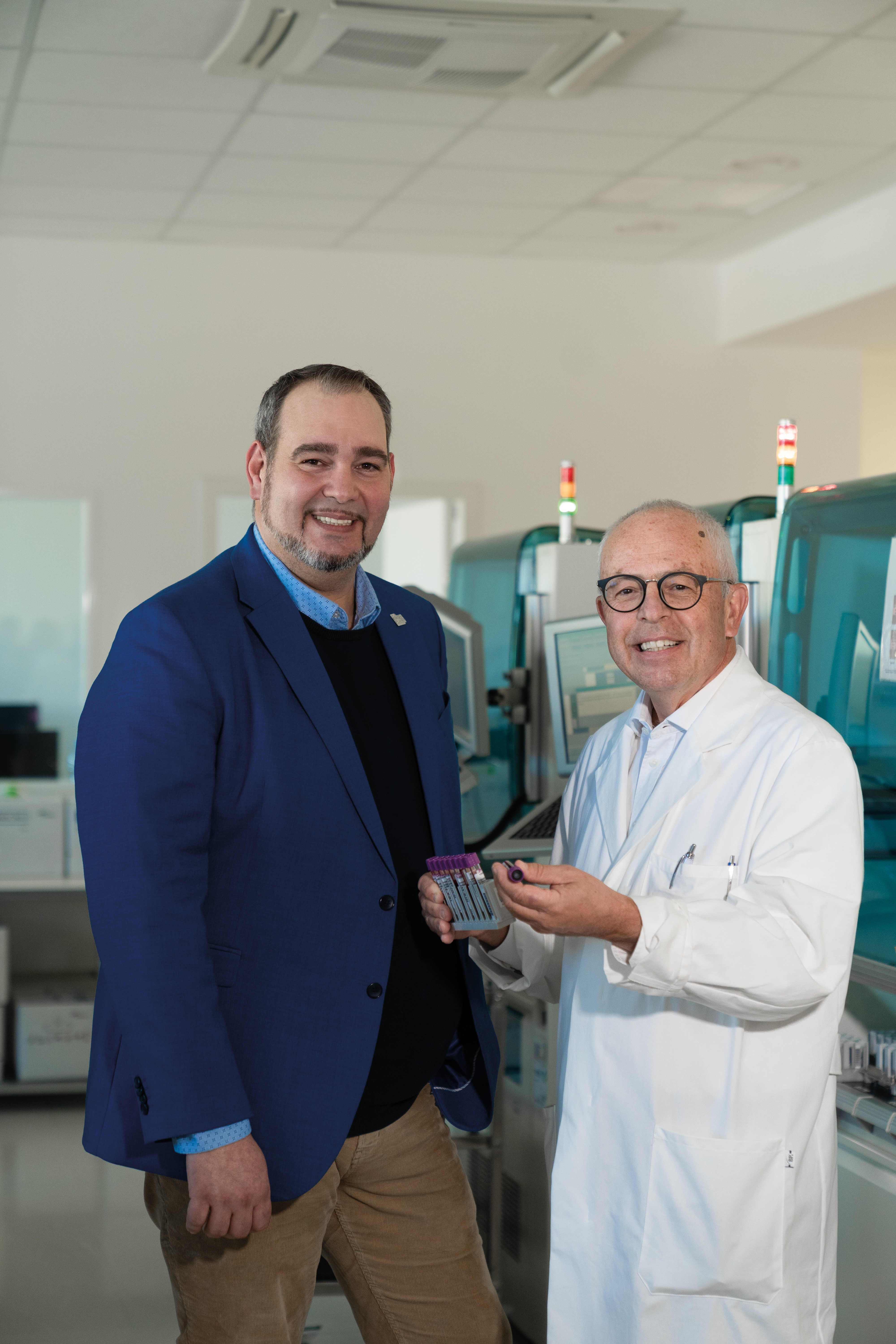 Foto 2: v.l.n.r.: Markus Glanzer, Unternehmensberater bei Die Krisenplaner und MedR Dr. Johannes Bauer, Geschäftsführender Gesellschafter bei labors.at, zeigen im Rahmen der aktuellen Kampagne der UBIT Wien, wie ein gemeinsam erarbeitetes Krisenmanagementsystem erfolgreich umgesetzt werden kann. © die Vogelperspektive e.U. / OMNES Werbe GmbH