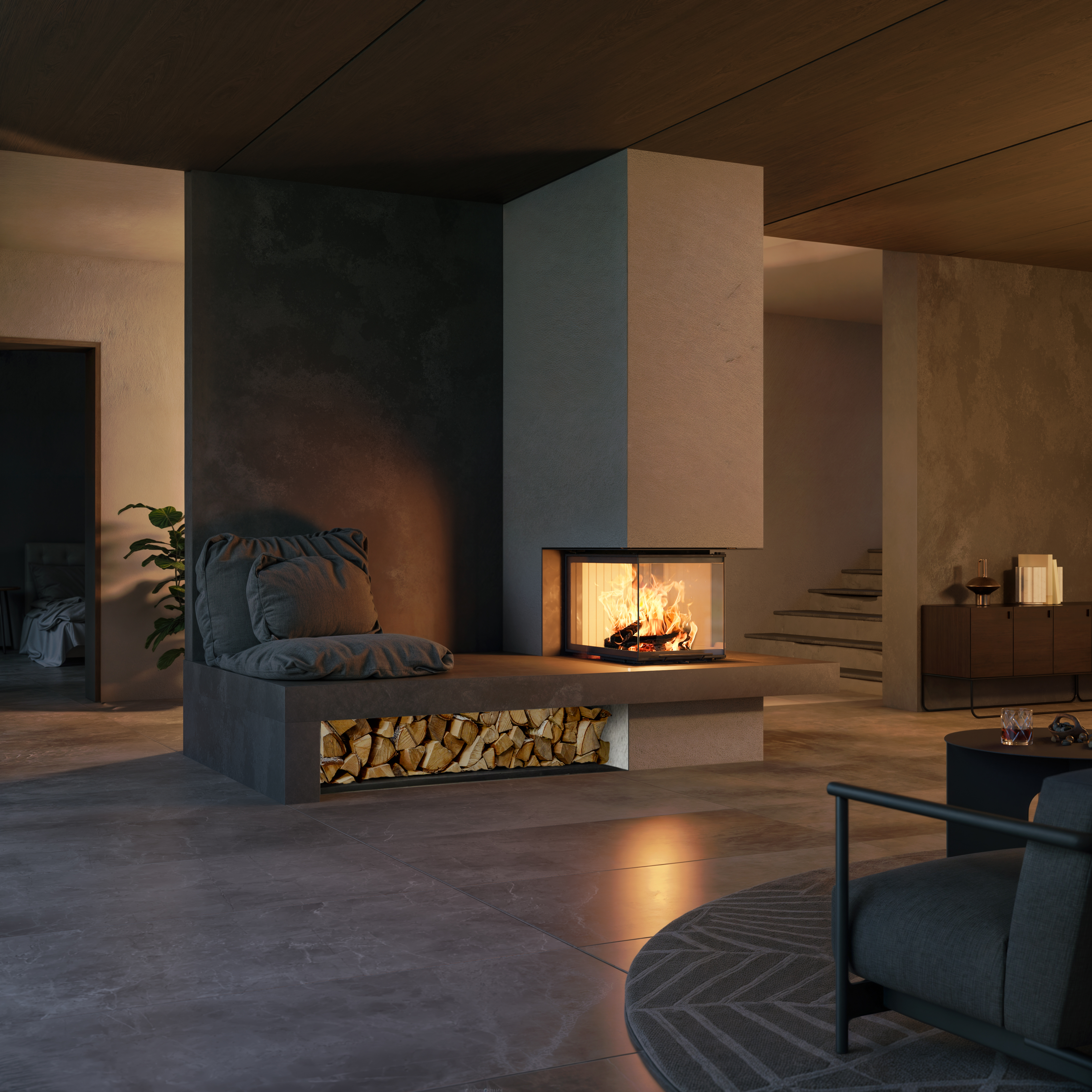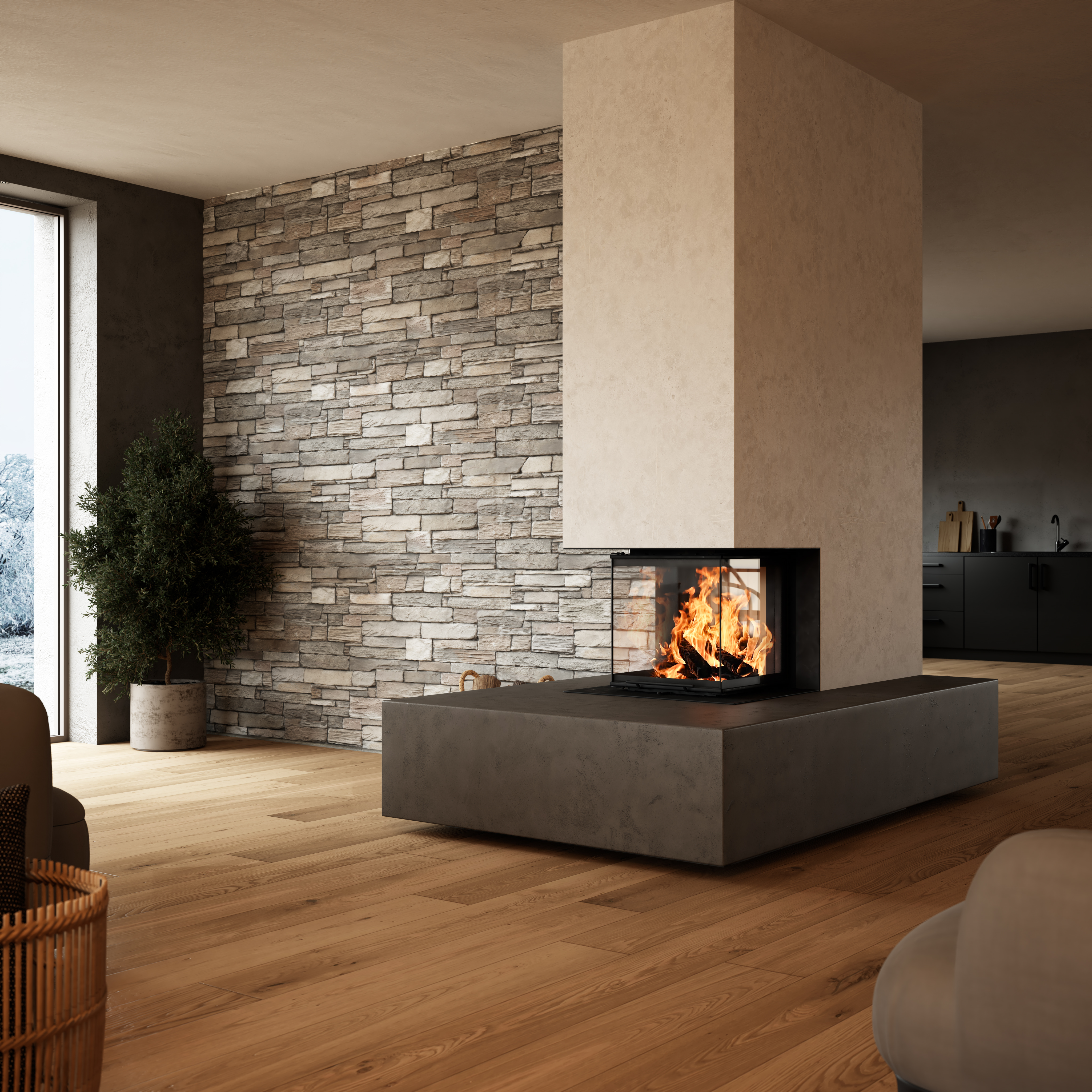 Die Panoramakamine von BRUNNER sind die optisch wohl reizvollste Variante eines Kamins und ermöglichen eine freie Sicht auf das Holzfeuer von drei Seiten. Dieses ultimative Feuererlebnis ist ideal als Raumtrenner oder als wärmearchitektonisches Highlight in Ihrem Wohnraum. Einige unserer Panoramakamine können sogar freischwebend mit dem neuen Tragrahmensystem verbaut werden, sodass der Fokus voll und ganz auf der Atmosphäre und dem faszinierenden Feuerambiente liegt.