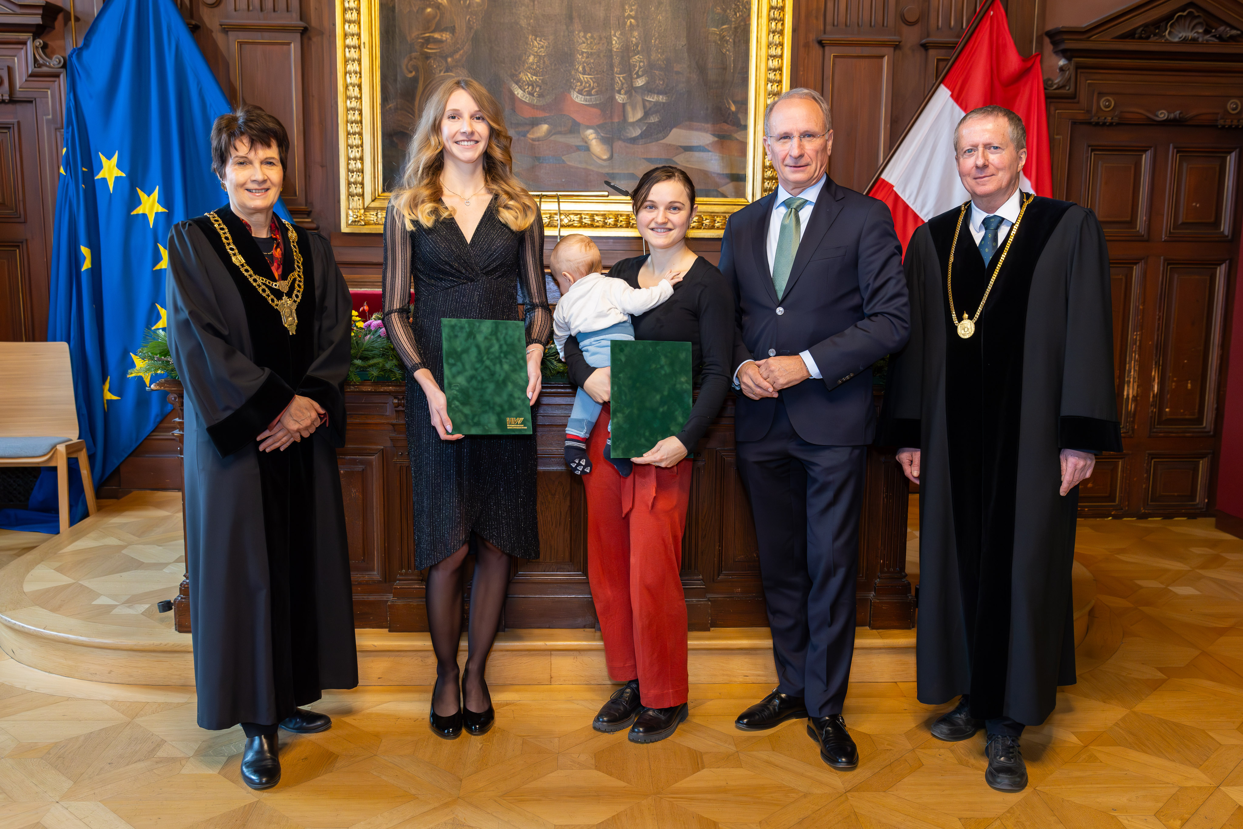 (Österreichische Hagelversicherung, 27. November 2024): Wie jedes Jahr wurde an der BOKU-University der Förderpreis der Österreichischen Hagelversicherung für herausragende wissenschaftliche Arbeiten verliehen. Die diesjährigen Preisträgerinnen, DI Katharina Schobersberger, BSc und Iris Schneider, MSc, wurden für ihre innovativen Masterarbeiten ausgezeichnet. Die feierliche Übergabe fand im Beisein von Rektorin Univ.Prof. MMag. Dr. Eva Schulev-Steindl, LL.M. und Dr. Kurt Weinberger, Vorstandsvorsitzender der Österreichischen Hagelversicherung und ehemaliger Vorsitzender des Unirats der BOKU, statt. „Die Arbeiten der Preisträgerinnen zeigen eindrucksvoll, wie bedeutend wissenschaftliche Forschung für die Bewältigung aktueller und zukünftiger Herausforderungen in der Landwirtschaft - in diesem Fall Tierwohl und Klimawandel - ist. Der BOKU-Förderpreis ist nicht nur eine Würdigung dieser Leistungen, sondern auch ein wichtiger Impulsgeber für junge Talente, ihre innovativen Ideen weiterzuentwickeln und in die Praxis zu tragen. Solche Auszeichnungen sind essenziell, um den Dialog zwischen Wissenschaft und Praxis zu fördern und Lösungen zu honorieren, die zur Weiterentwicklung der landwirtschaftlichen Betriebe beitragen“, so Kurt Weinberger.