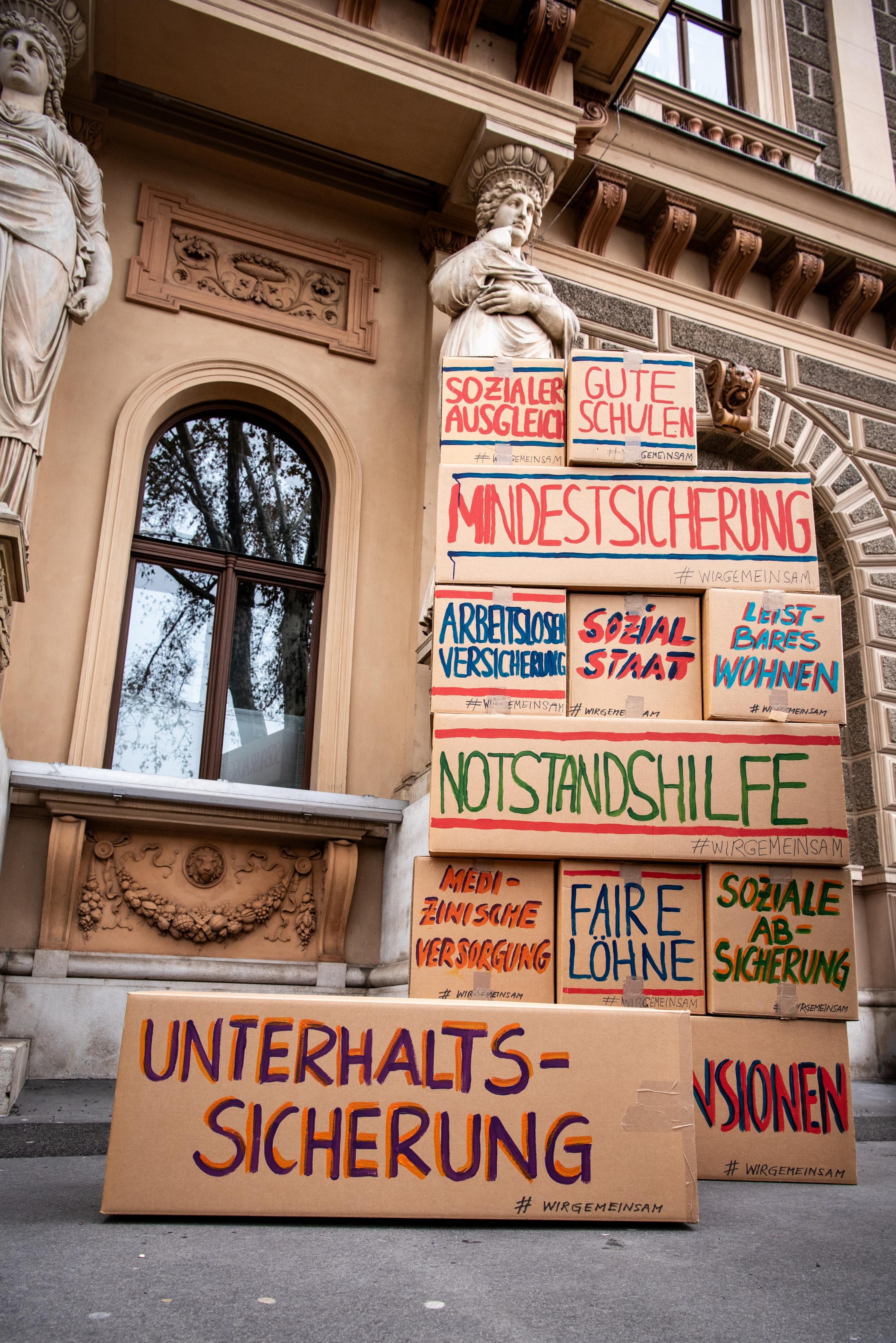 Aktion vor Palais Epstein: Zehn Bausteine für ein Österreich ohne Armut!