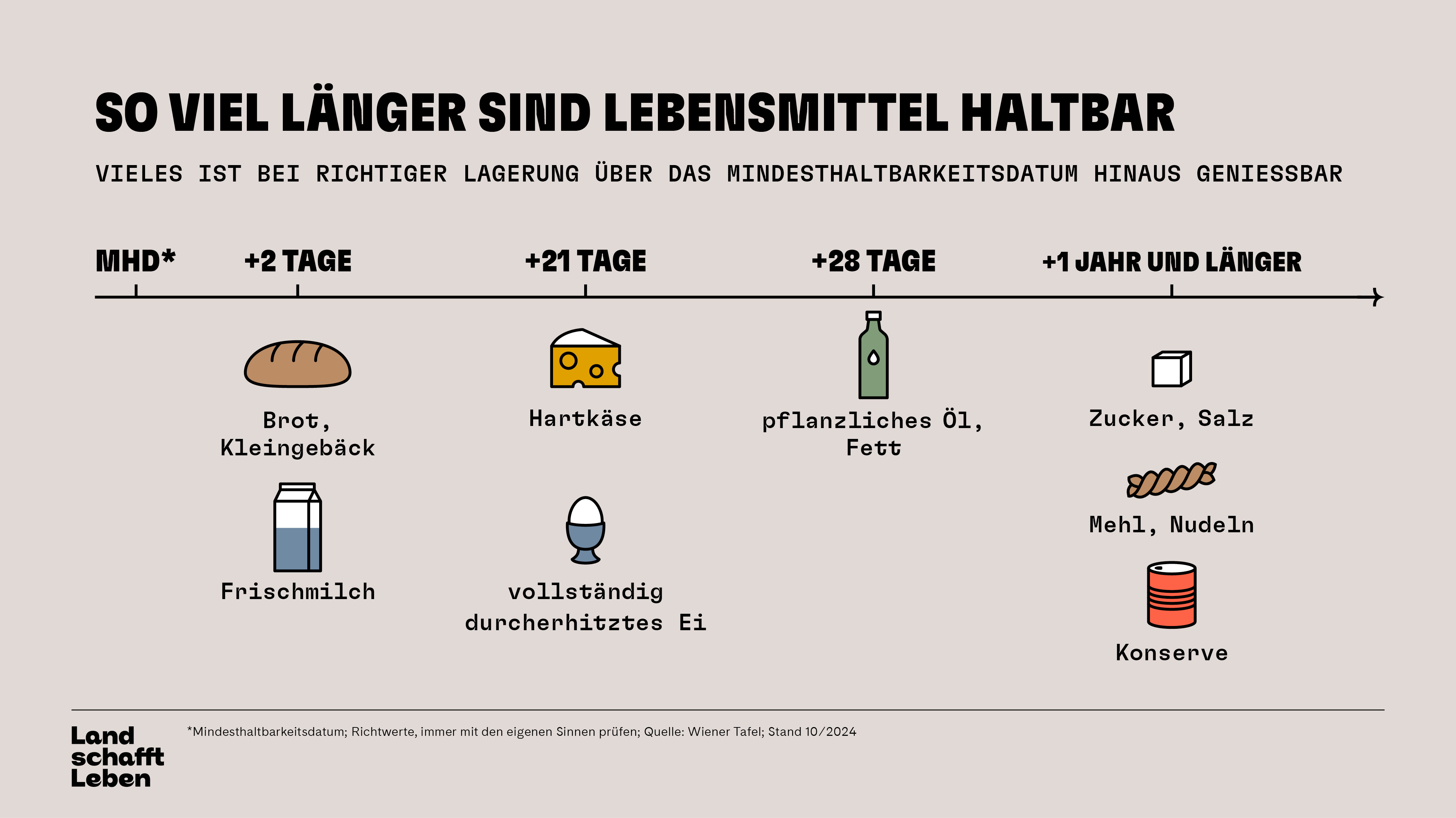 Oftmals verderben Lebensmittel rascher, weil sie nicht richtig gelagert wurden. Um Lebensmittelmüll zu vermeiden, ist es von Vorteil, sich über die korrekten Lagerbedingungen der einzelnen Lebensmittel zu informieren. Nicht missverstehen sollte man außerdem das Mindesthaltbarkeitsdatum (MHD). In vielen Fällen sind Lebensmittel deutlich länger haltbar, als das MHD angibt. Sich auf die eigenen Sinne zu verlassen, zahlt sich hier oft aus.