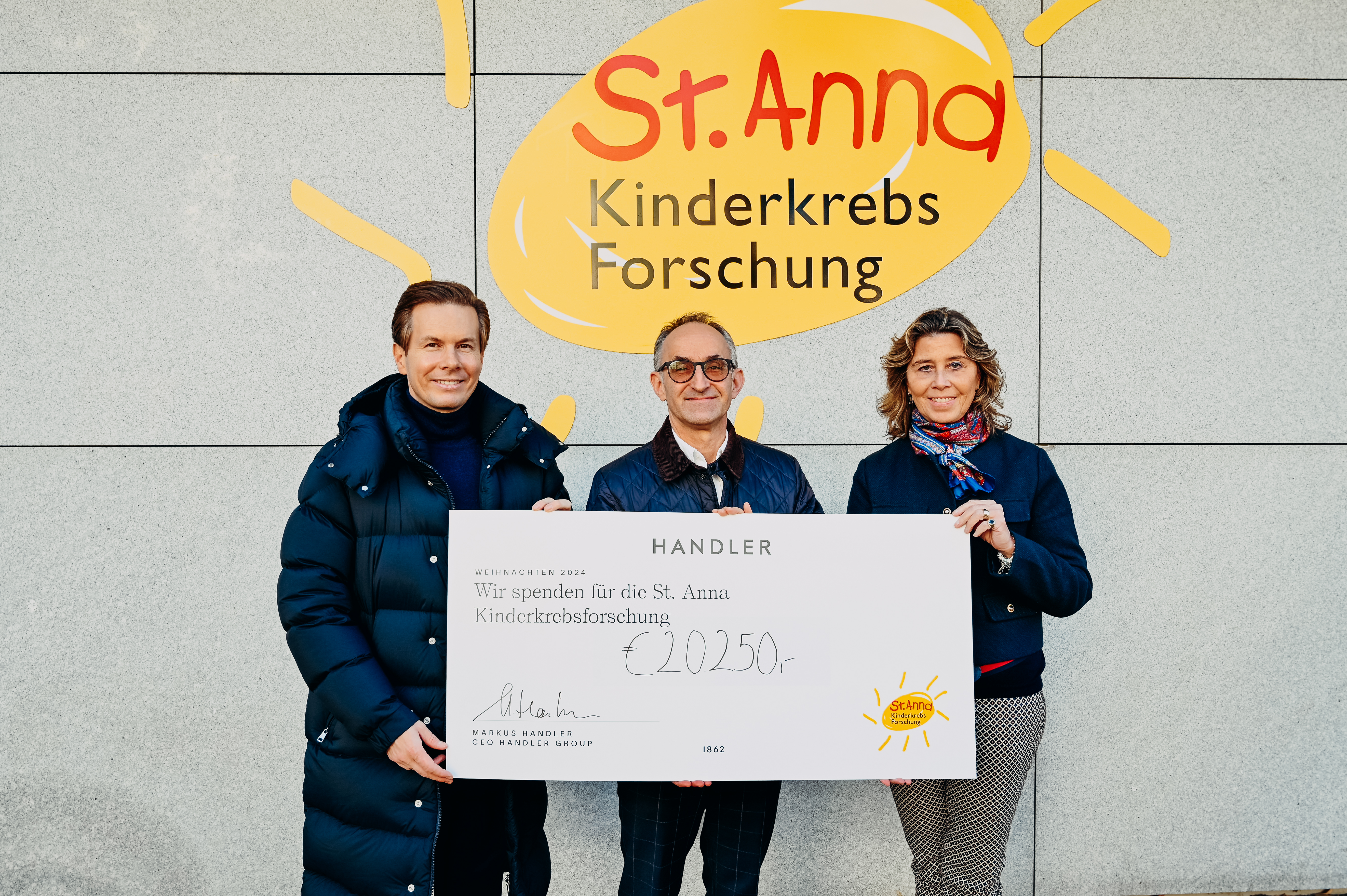 17. Dezember 2024 - Die St. Anna Kinderkrebsforschung ist eine der führenden Einrichtungen in Österreich, die sich der Erforschung und Behandlung von Krebs bei Kindern widmet. In den letzten zwei Jahren spendete Handler unter dem Motto „Helfen statt Schenken“ jeweils 10.000 Euro an die renommierte Forschungsinstitution.