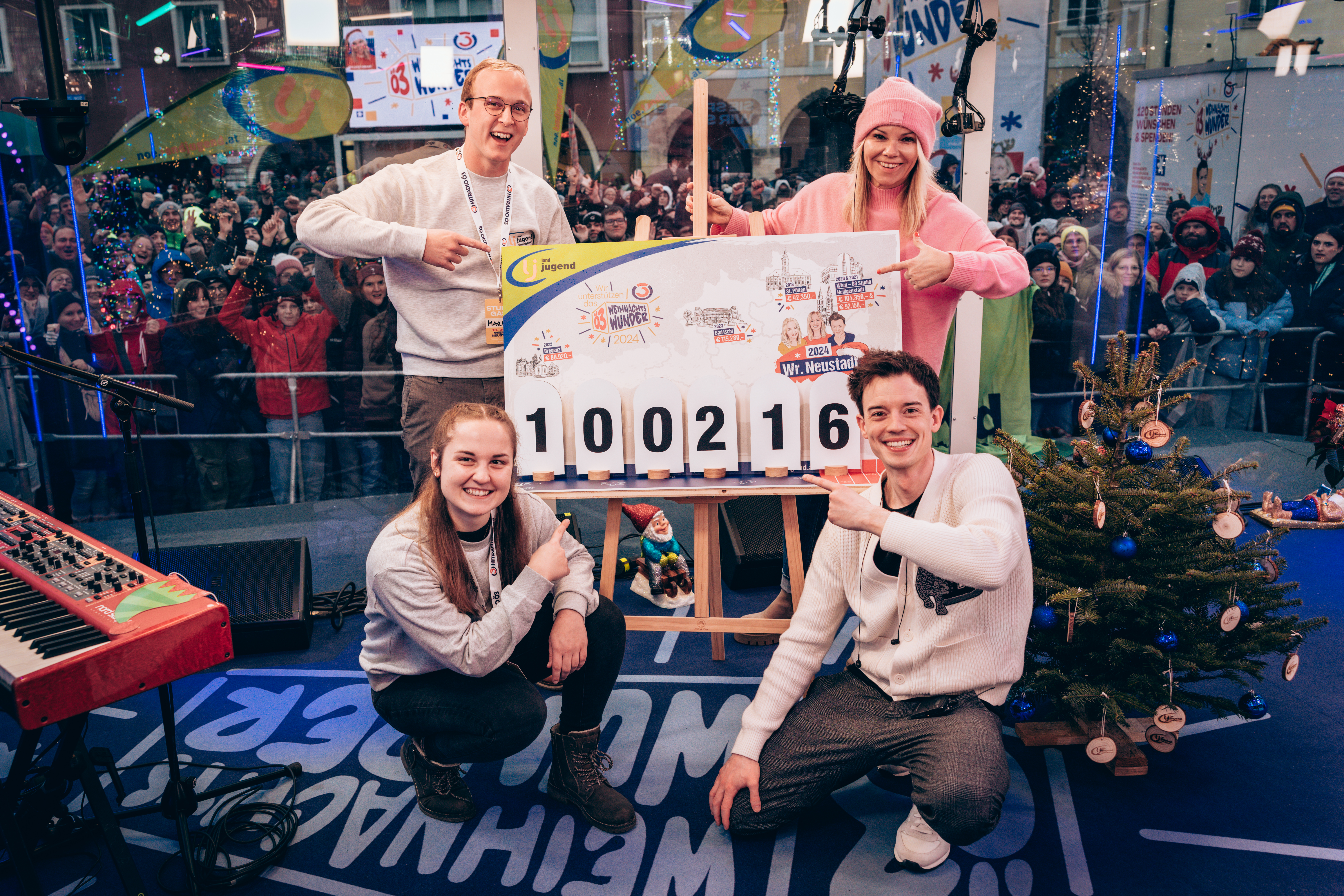 Am Sonntag wurden 100.216,- Euro für Familien in Not an Philipp Hansa, Tina Ritschl und Sylvia Graf übergeben. Hunderte Mitglieder waren in Wiener Neustadt mit dabei.