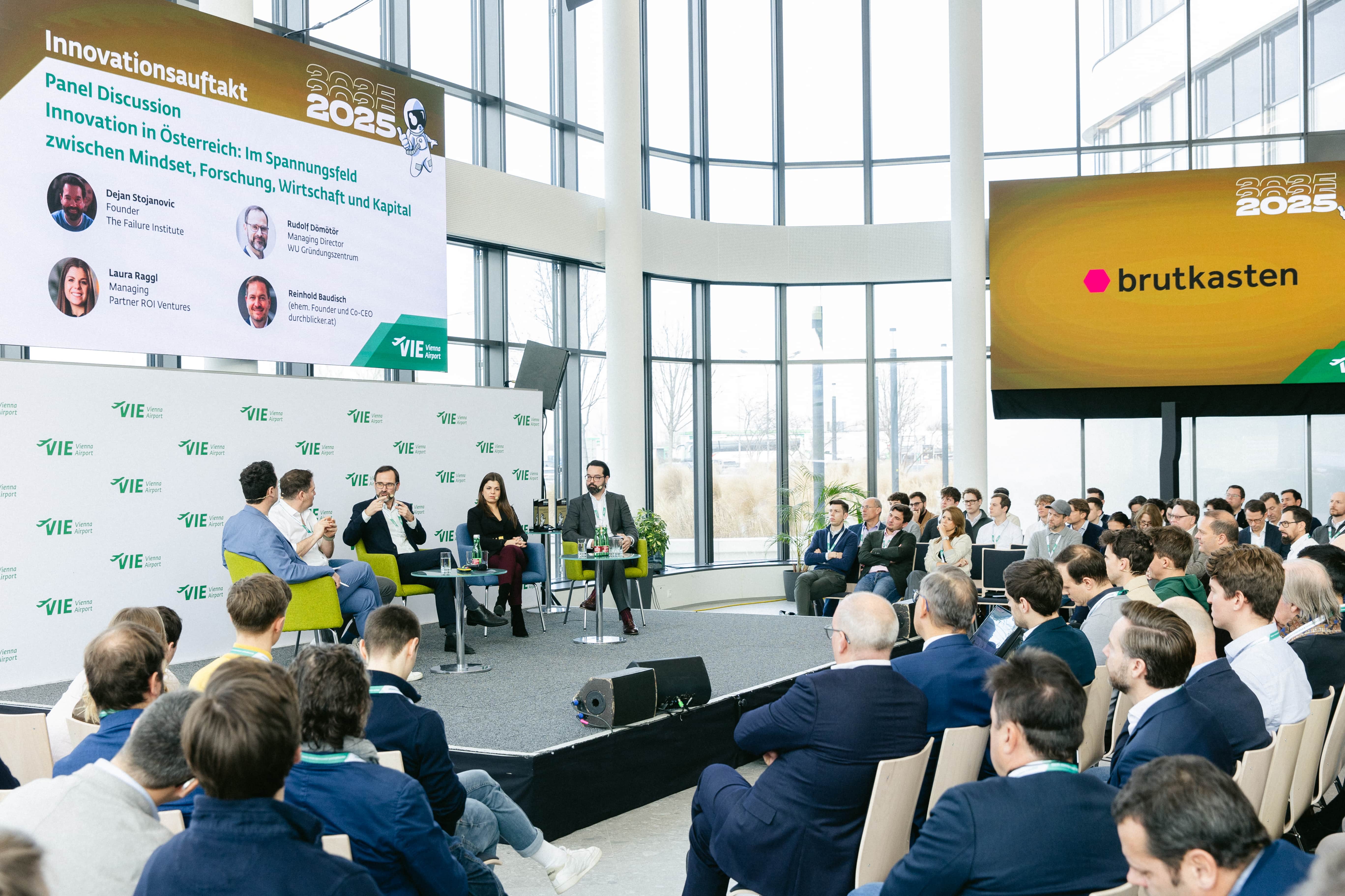 Am 14. Jänner 2025 war der Flughafen Wien mit dem „Innovationsauftakt 2025“ erneut Hotspot für Österreichs Innovationsszene, die sich bereits zum vierten Mal zum Jahresanfang im Vienna Airport Conference & Innovation Center trifft. Über 400 Gäste informierten sich bei spannenden Keynotes, angeregten Diskussionen, Live-Pitches von Start Ups und Workshops zu AI darüber, warum Innovation der Schlüssel zur langfristigen Wettbewerbs- und Zukunftsfähigkeit ist. Hochkarätige Speaker, wie etwa Dominic Thiem, US Open Champion und Gründer von Thiem Energy, Rudolf Dömötör, Managing Director WU Gründungszentrum, Reinhold Baudisch, Founder von durchblicker.at, Dejan Stojanovic, Founder The Failure Institute sowie Laura Raggl, CEO von ROI Ventures erläuterten ihre Zugänge zu den Themen Erfolg und Innovation und was aus ihrer Sicht nötig ist, um Österreich gemeinsam wieder wirtschaftlich an die Spitze zu bringen. In diesem Jahr wurde auch erstmalig der „Flughafen Wien Innovationspreis“ vergeben. Durch die Veranstaltung führten Dejan Jovicevic, CEO brutkasten und Christoph Schmidt, Geschäftsführer des Vienna Airport Conference & Innovation Center. Das Event fand im topmodernen Vienna Airport Conference & Innovation Center im Office Park 4 statt.