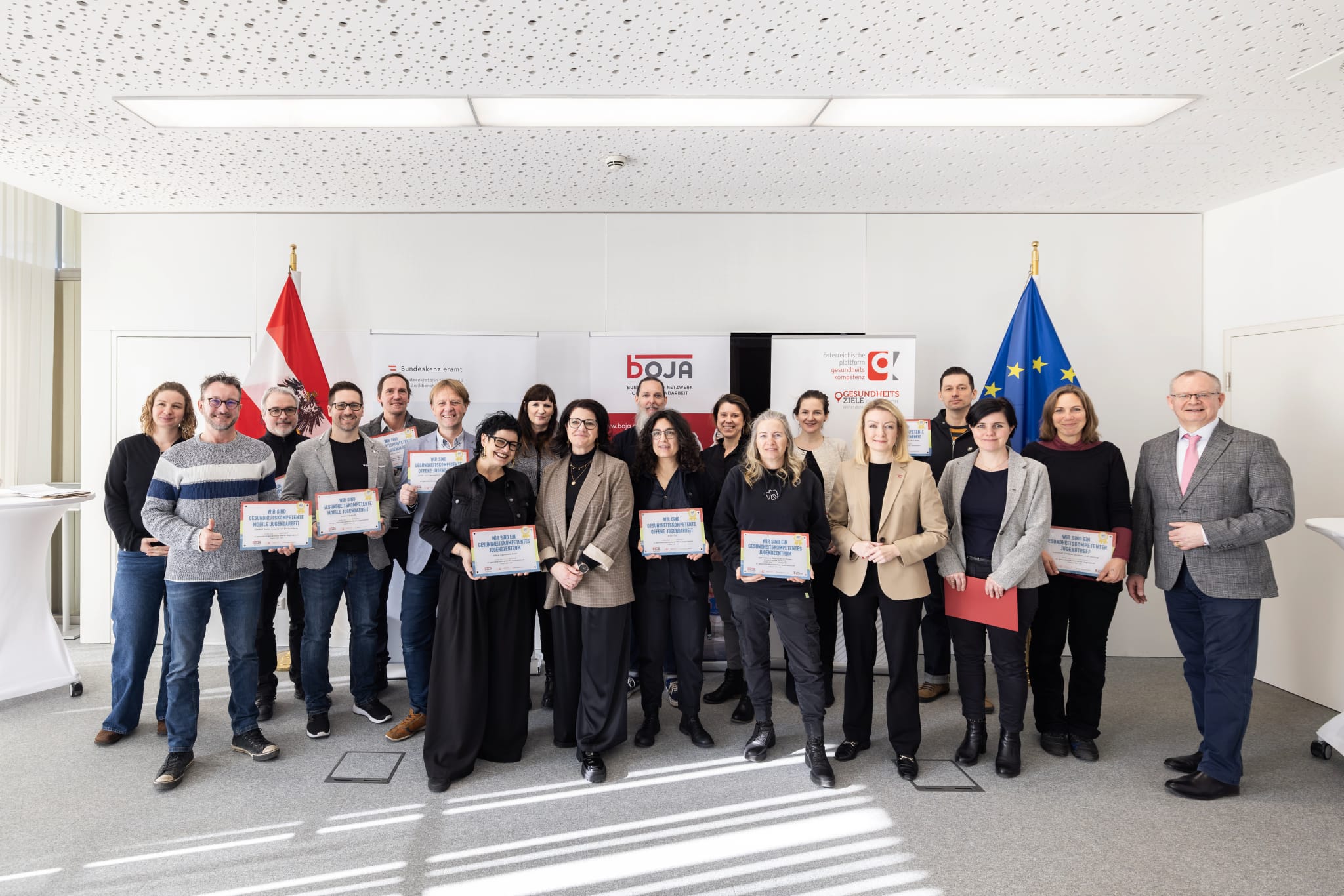 Die Auszeichnung zur Gesundheitskompetenten Offenen Jugendarbeit wird seit 2018 von bOJA, dem bundesweiten Netzwerk Offene Jugendarbeit in Österreich durchgeführt. bOJA vertritt das Handlungsfeld der Offenen Jugendarbeit, das aus österreichweit 350 Trägerorganisationen mit über 680 Einrichtungen besteht. Die rund 2.500 Fachkräfte der Offenen Jugendarbeit - Pädagoginnen und Pädagogen nd Sozialarbeiterinnen und Sozialarbeiter - erreichen mit ihrer Arbeit jährlich im Schnitt 250.000 Jugendliche in Jugendtreffs, Jugendzentren sowie durch Mobile Jugendarbeit/Jugendstreetwork.