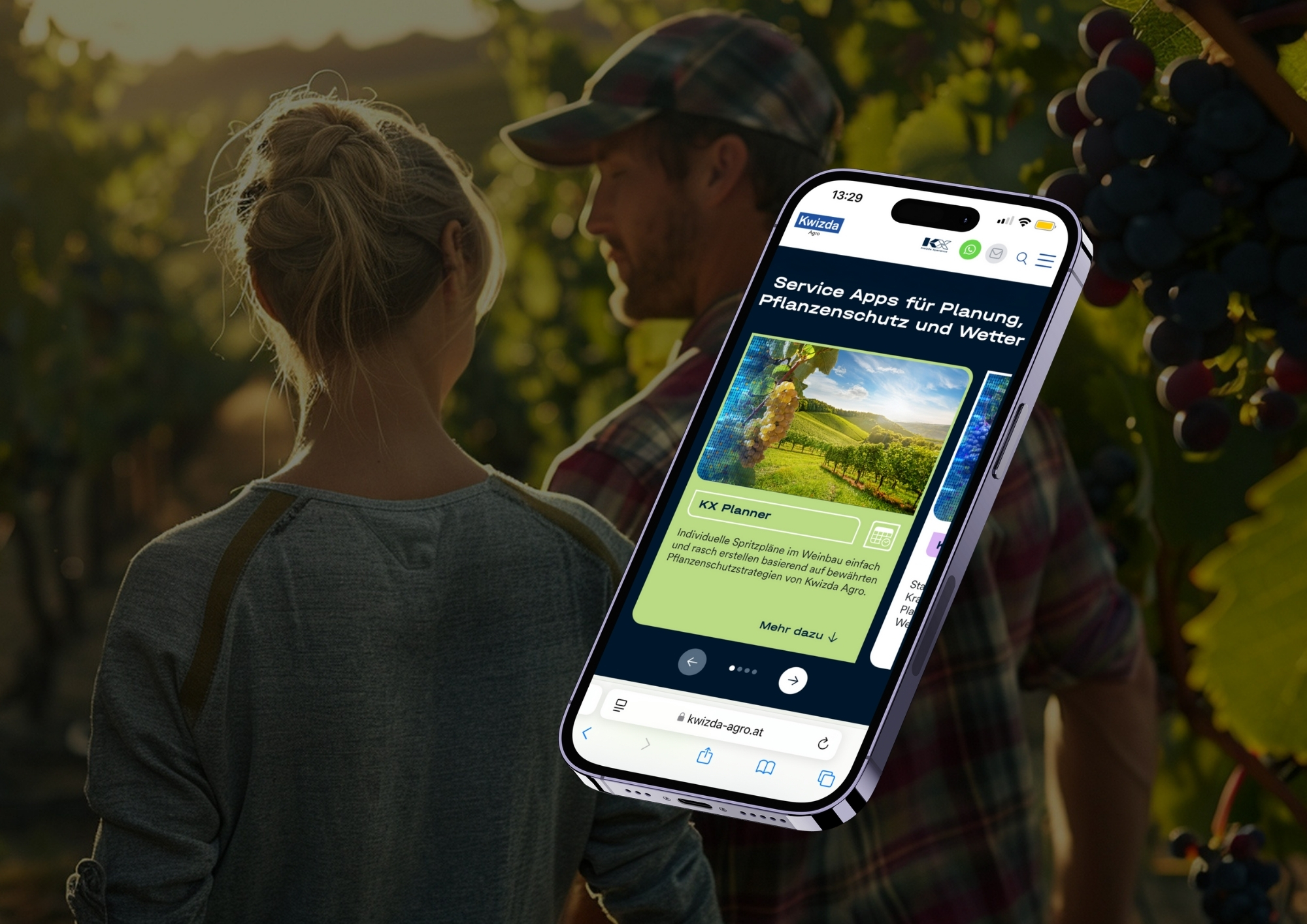 Die ständig wechselnden Bedingungen durch Klimawandel, Extremwetterlagen und neue Schaderreger erfordern Flexibilität und eine rasche, oftmals tagesaktuelle Anpassung der landwirtschaftlichen Praxis. Diese Situation wird durch den regulatorisch bedingten Kahlschlag an Wirkstoffen verschärft. Mit der digitalen Transformation eröffnet Kwizda Agro ihren Kunden neue Möglichkeiten, um im Falle des Auftretens von Schaderregern noch schneller und sicherer reagieren zu können. Kwizda Agro hat daher das Wissen und die Erfahrung ihrer Pflanzenschutz- und Digitalisierungsexperten gebündelt, neue moderne Services für die Landwirtschaft und den Weinbau entwickelt und auf einer digitalen Plattform zusammengeführt. Die Microservices stehen für Weingärten und Felder in Deutschland, Österreich, Rumänien und Ungarn mehrsprachig zur Verfügung.