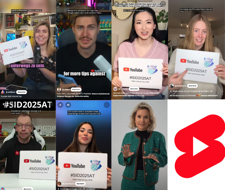 Als langjähriger Begleiter des Safer Internet Days leisten Google und YouTube Austria Aufklärungsarbeit rund um digitale Gefahren und ein sicheres Miteinander im Netz. Um vor allem Kinder und Jugendliche für das Thema Internetsicherheit zu sensibilisieren, wird auf die Zusammenarbeit mit YouTuber:innen mit Reichweiten von bis zu mehreren Millionen Abonnent:innen gesetzt. Sieben österreichische Creators haben YouTube Shorts Videos erstellt, in denen sie wertvolle Tipps und Tricks für einen sicheren Umgang im Netz geben. Sie zeigen unter anderem, wie sich User:innen vor Phishing schützen können, wie man KI-generierte Bilder erkennt und welche Google Tools verwendet werden können.