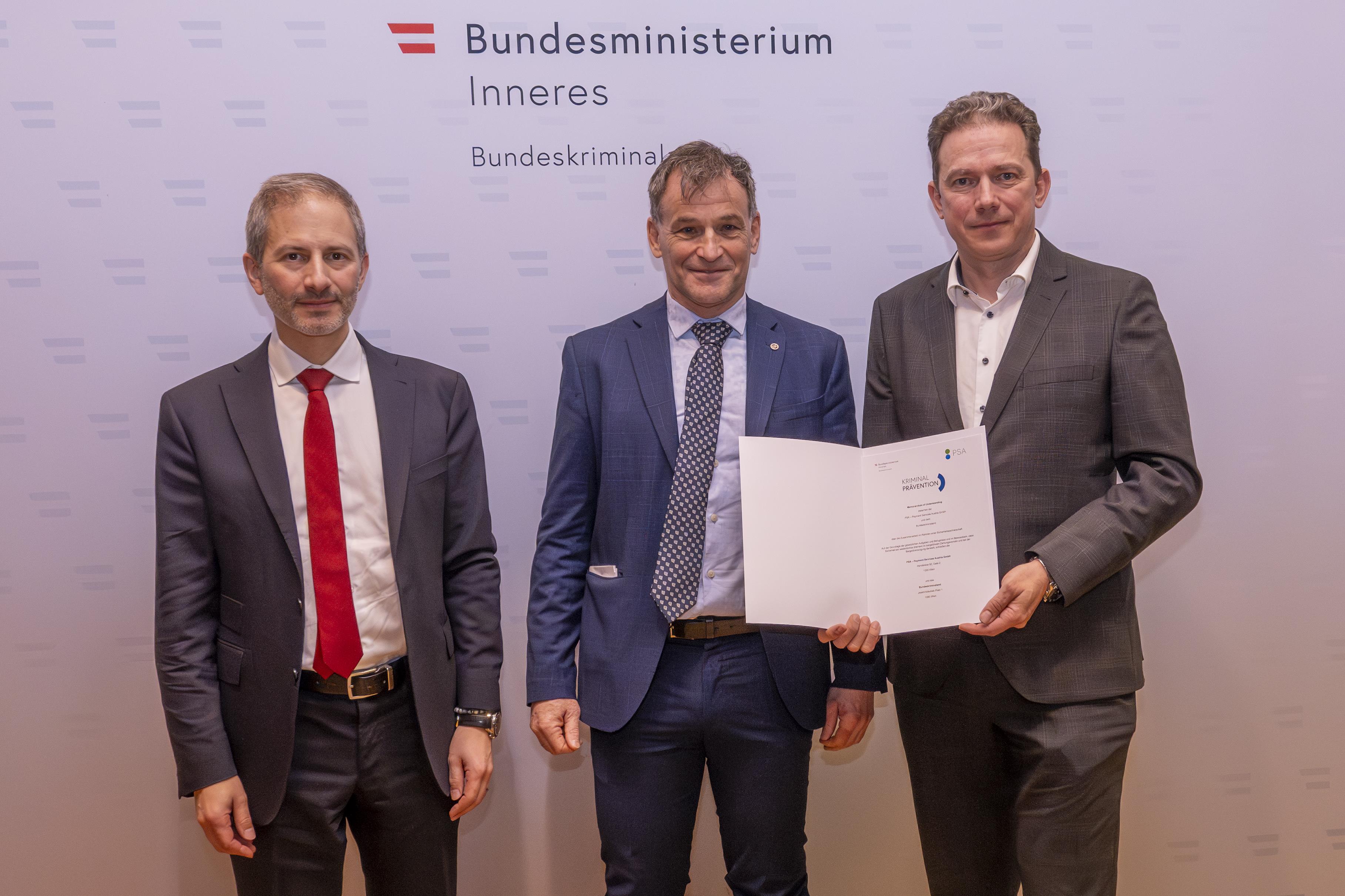 Im Rahmen der Unterzeichnung wurde Thomas Von der Gathen, ein erfahrener Experte der PSA, für seine langjährige, engagierte Arbeit in der Aus- und Weiterbildung sowie seine enge Zusammenarbeit mit dem BK im Bereich der Cyberprävention ausgezeichnet. Der stellvertretende Direktor des BK, Paul Marouschek, überreichte ihm das offizielle Dekret sowie den BK-Award für besondere Verdienste.