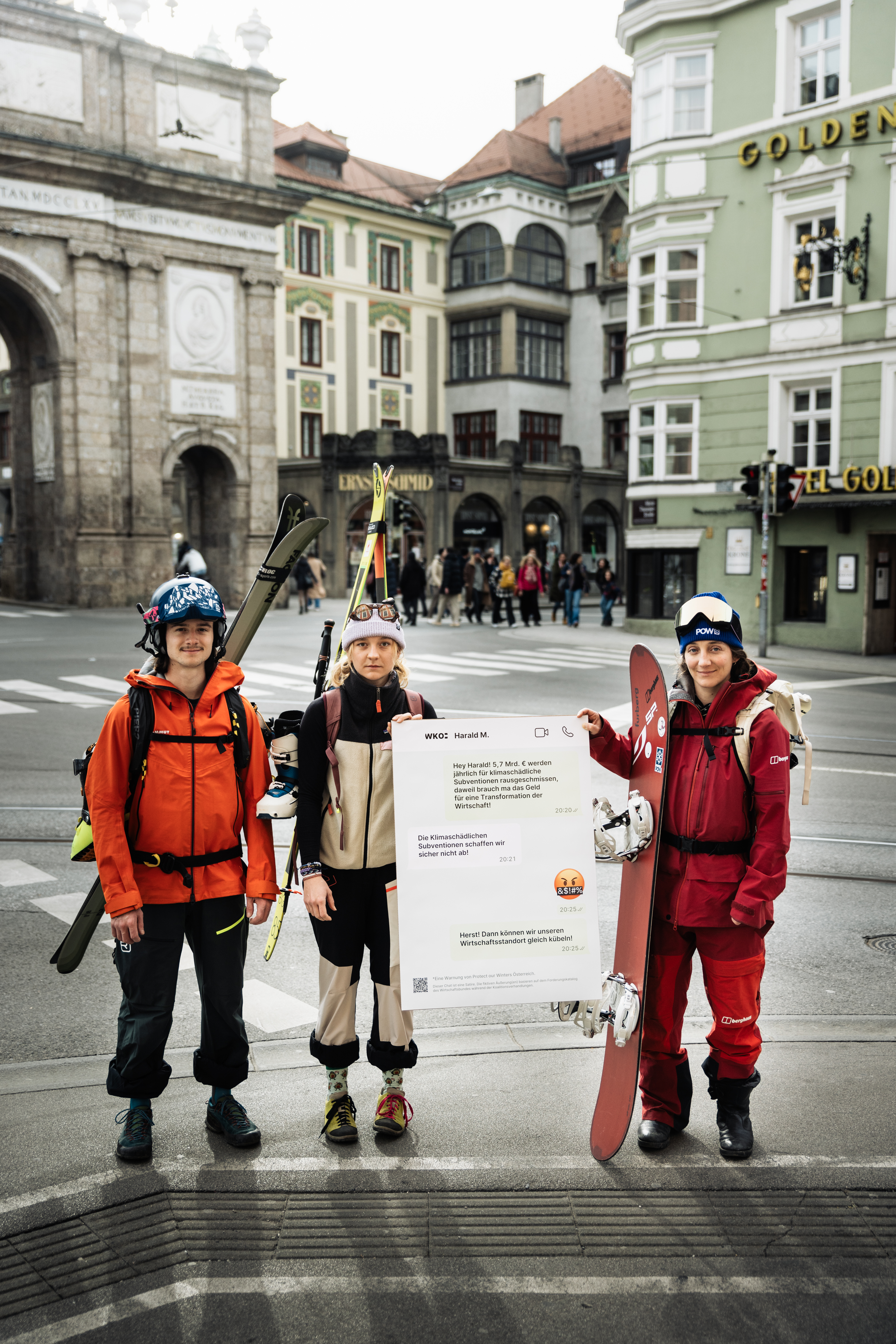 Anlässlich der WKO-Wahl vom 10.-13. März startet Protect Our Winters (POW) eine Plakatkampagne. „Die klimaschädlichen Subventionen schaffen wir sicher nicht ab!“, schreibt Harald M. über WhatsApp - das Plakat zeigt einen satirischen Chatverlauf, der die Blockadehaltung der WKO-Präsidentschaft gegenüber fortschrittlicher Klima- und Energiepolitik aufzeigt. „Die WKO unter der Führung des Wirtschaftsbunds hat zuletzt wieder einmal gezeigt, wie sie zur Blockade der Transformation der Wirtschaft in Österreich beiträgt. Auf genau das macht unsere Plakatkampagne nun aufmerksam. Wir rufen alle Wahlberechtigten auf, ihre Stimme zu nutzen und eine Veränderung zu ermöglichen“