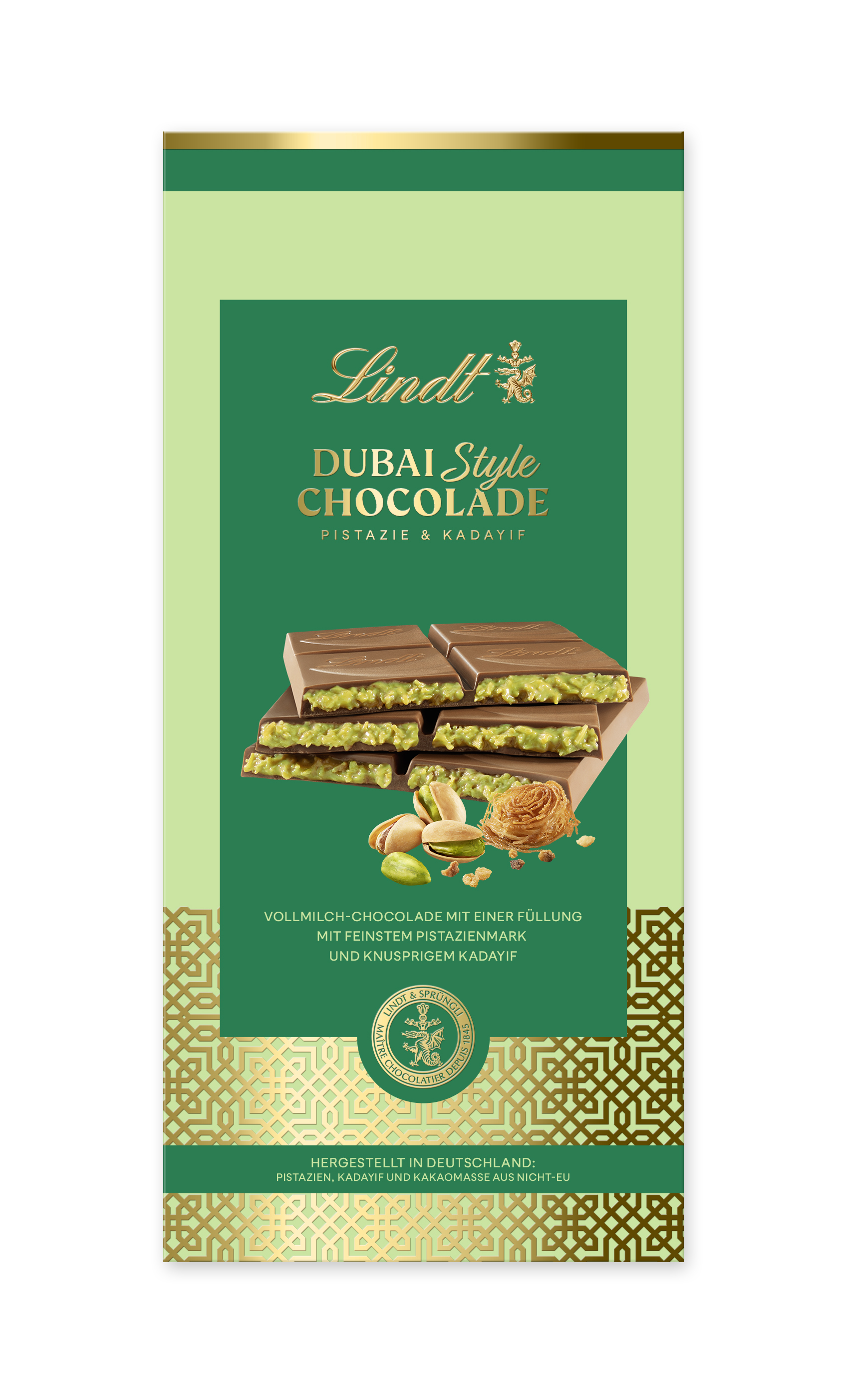 Lindt Dubai Style Chocolade Tafeln: Hergestellt in Deutschland, mit Kakaomasse, Pistazienmark und Kadayif aus Nicht-EU