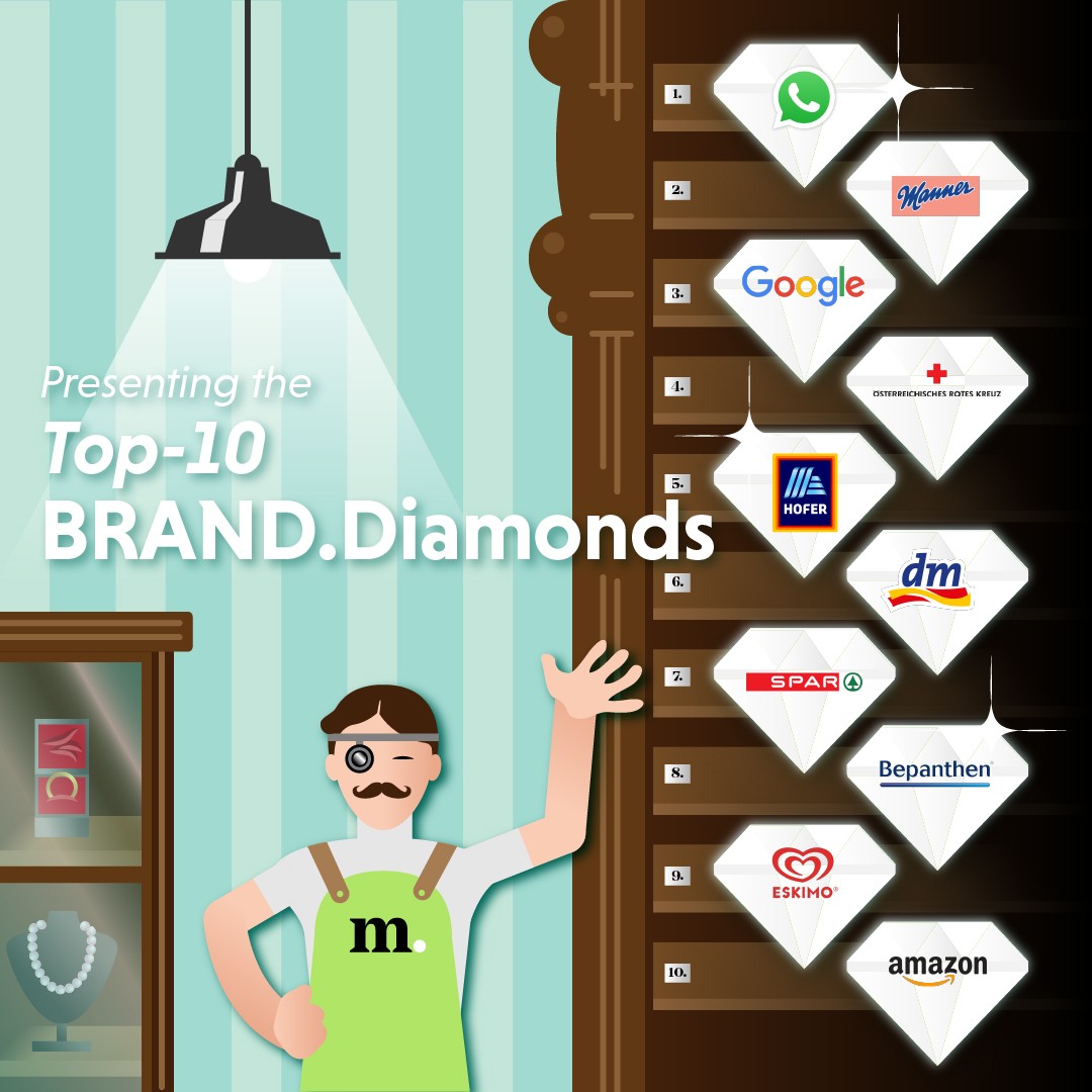 Ein Jahr lang wurden die Österreicherinnen und Österreicher via App Tool nach den besten und beliebtesten Marken des Landes gefragt. Herausgekommen sind mehr als 230.000 Bewertungen von 1.266 Brands aus dem Alltag von Herrn und Frau Österreicher. Das Besondere dabei: Marken quer über alle Branchen hinweg werden abgefragt - von Lebensmitteln über den digitalen Bereich bis hin zu Non-Profit-Organisationen ist alles dabei - mit dem Ziel, Österreichs Top-Marken zu ermitteln und die „BRAND.Diamonds“ des Jahres 2024 zu küren.