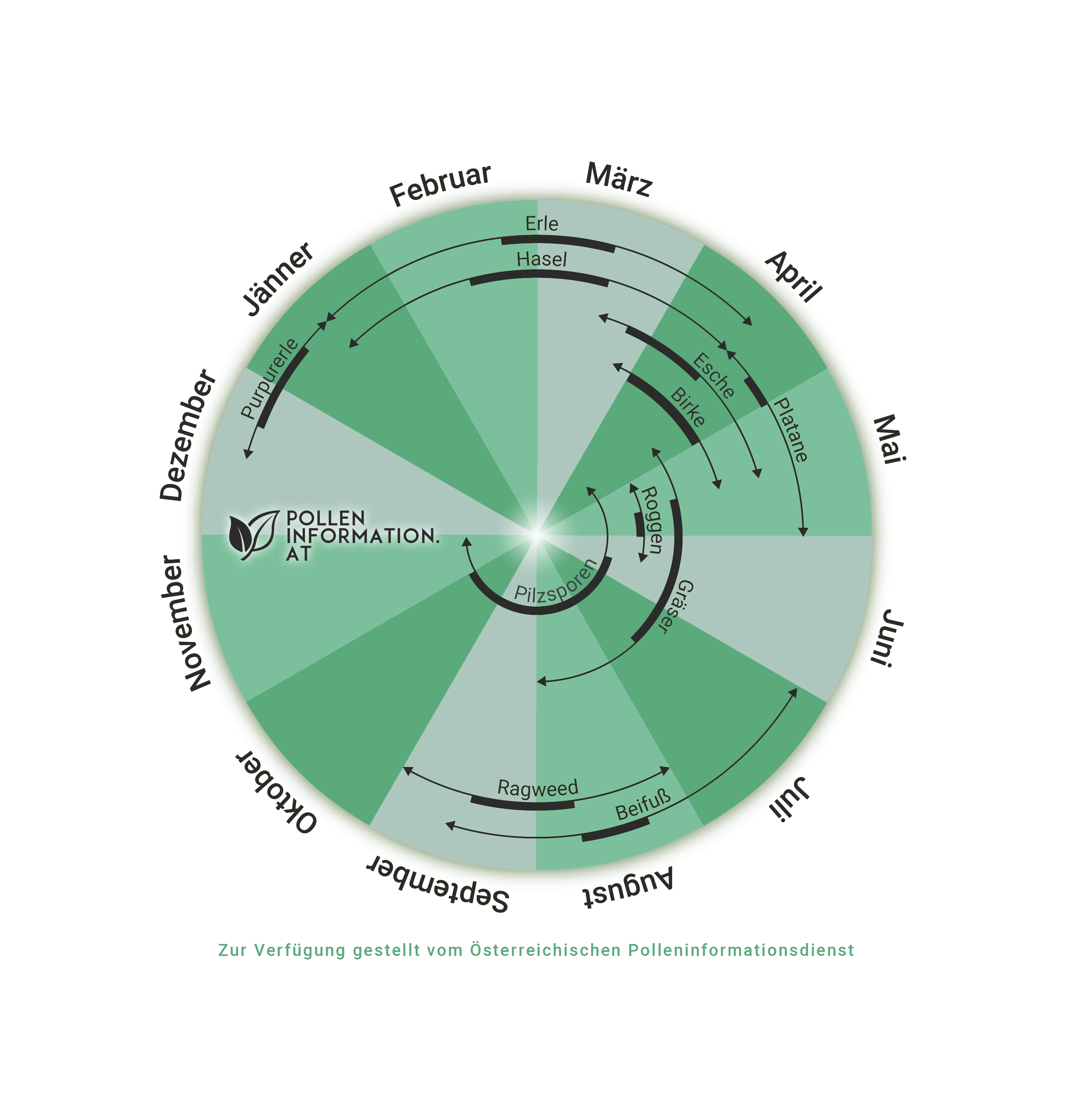 Anfang April folgt die Blüte der Gräser, gefolgt von der Wildkraut- und Gewürzpflanze Beifuß, die meist Mitte August ihren Höhepunkt erreicht. Eine neue Herausforderung für Gräserpollenallergiker stellt die Schilfblüte am Neusiedler See im September dar. Das Unkraut Ragweed schließt die Pollensaison von Spätsommer bis in den Oktober hinein vorerst ab. Danach haben Allergiker rund zwei Monate Ruhe - bis die kälteresistente Purpurerle im Dezember mit ihrer Blüte beginnt.