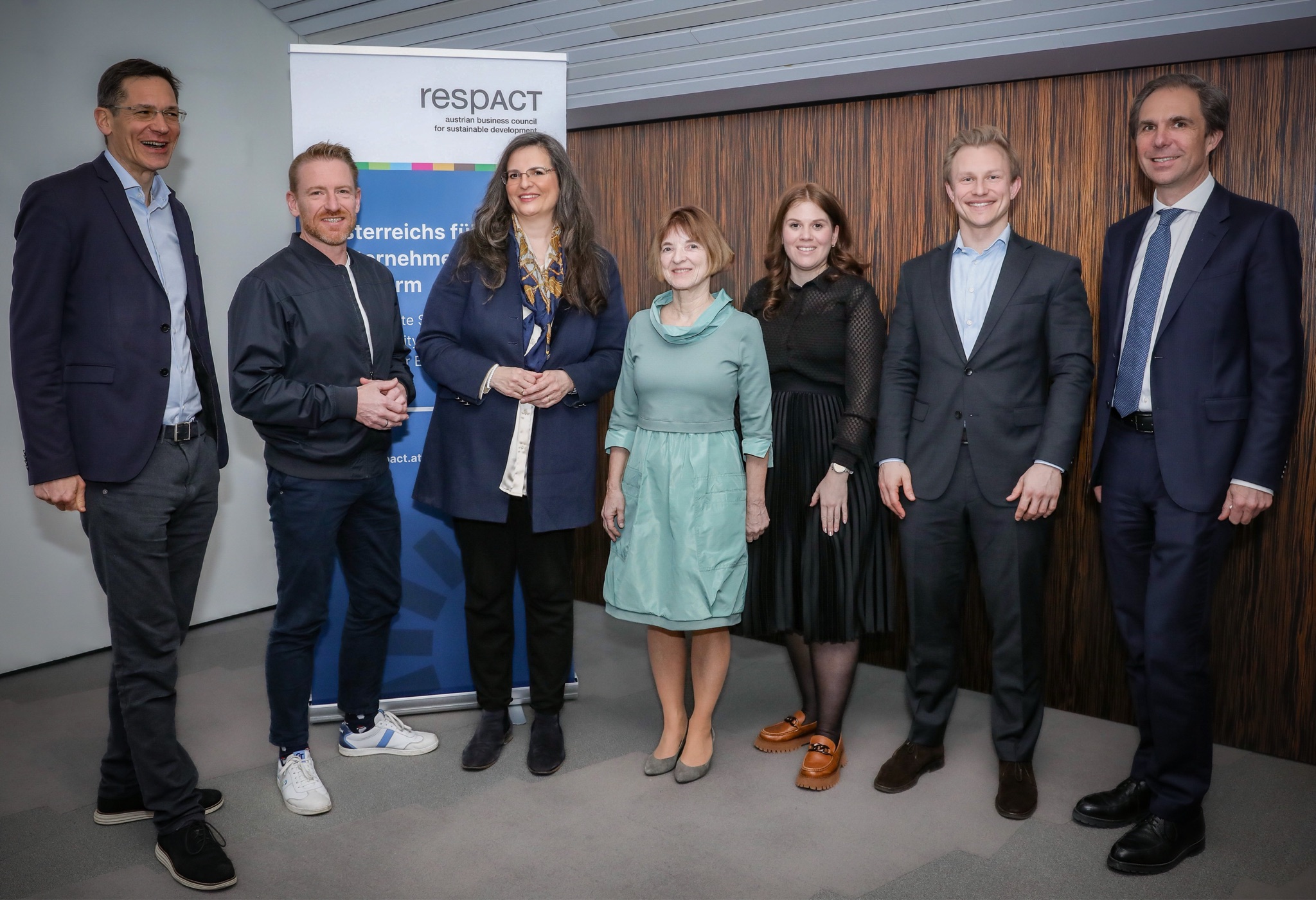 In der anschließenden Podiumsdiskussion, moderiert von Gabriela Maria Straka (Vorstandsmitglied respACT, Chefredakteurin MANZ Nachhaltigkeit und Österreichs Innovatorin UN Weltklimakonferenz COP 28), diskutierten mit Barbara Ascher (Geschäftsführerin, Feller-Neumayer GmbH), Marina Luggauer (Managerin, KPMG Austria), Maximilian Nowak (Center für Nachhaltige Produktion und Logistik, Fraunhofer), Georg Kopetz (CEO und Co-Founder, TTTech Computertechnik AG), Haimo Primas (CEO, Holcim (Österreich) GmbH) und Wolfram Senger-Weiss (Vorsitzender der Geschäftsleitung, Gebrüder Weiss) hochkarätige Vertreter*innen aus verschiedenen Branchen, wie Unternehmen ihre CO₂-Emissionen reduzieren und gleichzeitig konkurrenzfähig bleiben können.