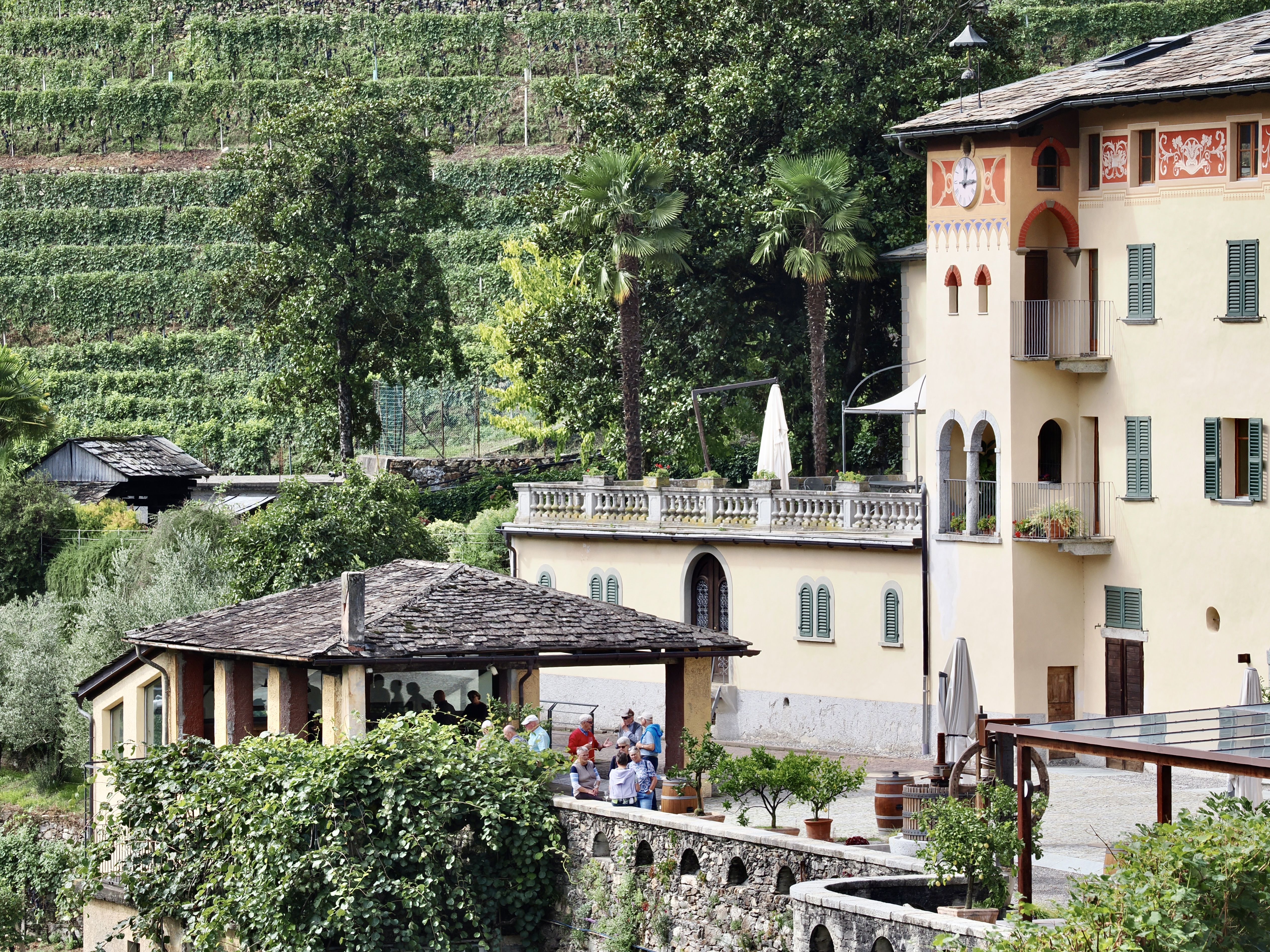 Nach dem Rundgang erwartet die Gäste ein Apéro und Mittagessen, begleitet von einer Degustation typisch Veltliner Rotweine. Die Rückreise erfolgt mit dem Bernina Express (BEX 976) zurück nach St. Moritz. Sollte der BEX 971 ausgebucht sein, besteht die Möglichkeit, mit einem Regionalzug nach Tirano zu reisen.