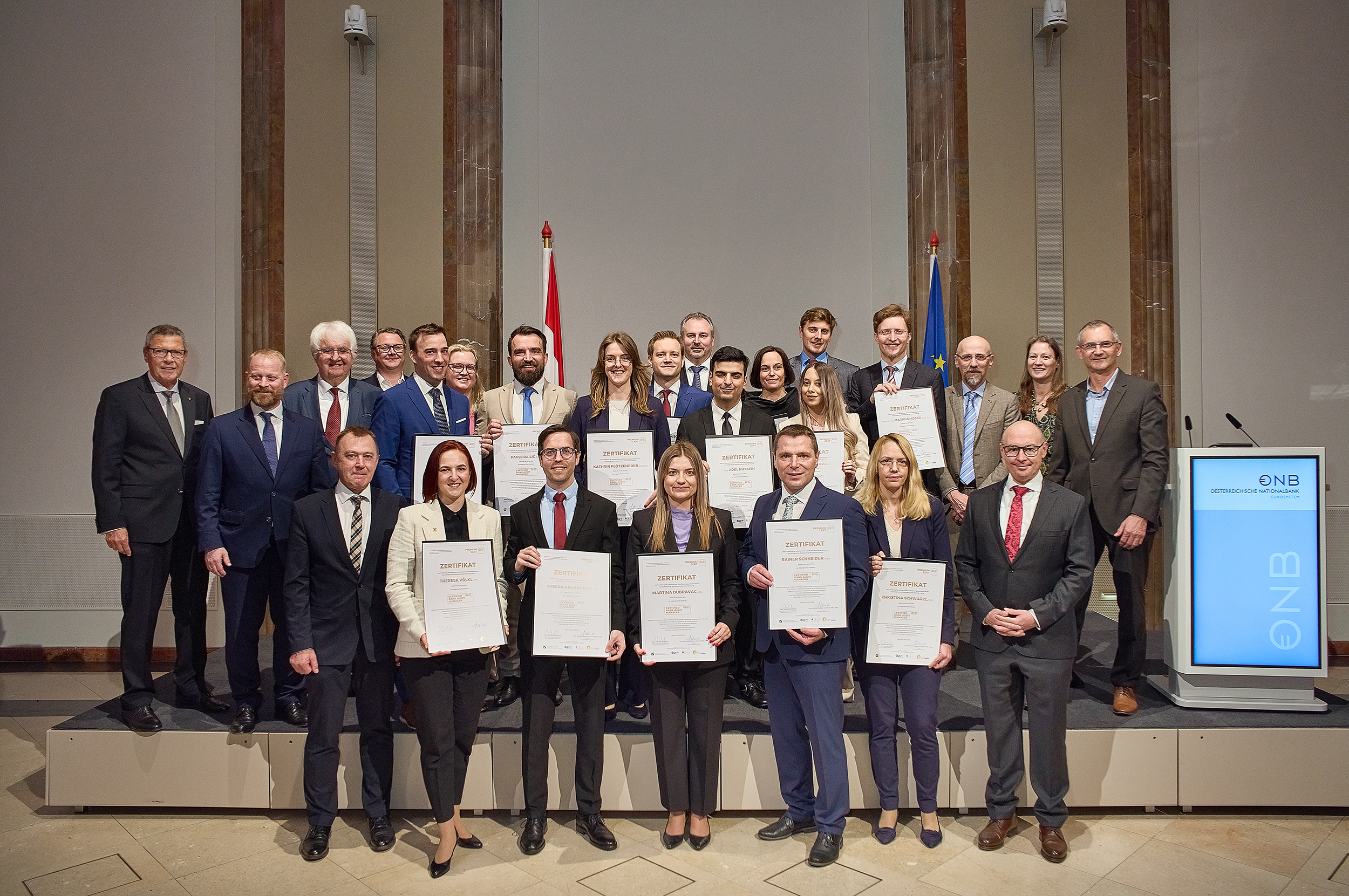 Die Zertifizierung für Bankprüfer:innen zum „Certified Bank Auditor Management“, kurz CBAM - hebt die Qualitätssicherung im österreichischen Bankenwesen auf das nächste Level. Bei der Verleihung der Zertifikate an die 14 Absolvent:innen von 2025 in der Österreichischen Nationalbank betont Gouverneur Univ.-Prof. Dr. Robert Holzmann: „Diese Veranstaltung markiert einen bedeutenden Meilenstein in der kontinuierlichen Verbesserung und Professionalisierung der Bankprüfung in Österreich. Die Zertifizierung trägt maßgeblich dazu bei, das Vertrauen in unsere Banken zu stärken und ist ein herausragendes Beispiel für die Innovationskraft unserer Finanzbranche.“