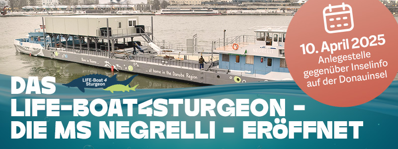 Das frühere Steintransportschiff MS Negrelli der viadonau wurde eigens für das Projekt LIFE-Boat4Sturgeon in eine schwimmende Aufzuchtstation für Donaustöre umgebaut. Das Schiff wird Mutterfischen und jungen Stören in 31 Aufzuchtbecken ein Zuhause im Wiener Donauwasser bieten und ist damit das offizielle LIFE-Boat4Sturgeon. Bis 2030 sollen rund 1,6 Millionen Jungfische am Schiff aufgezogen und anschließend in unterschiedlichen Donauabschnitten ausgewildert sein.