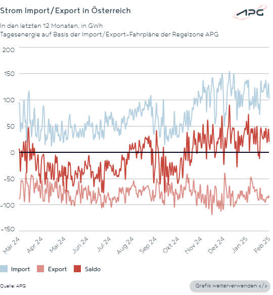 APG: Strom-Importphase setzt sich im Februar fort