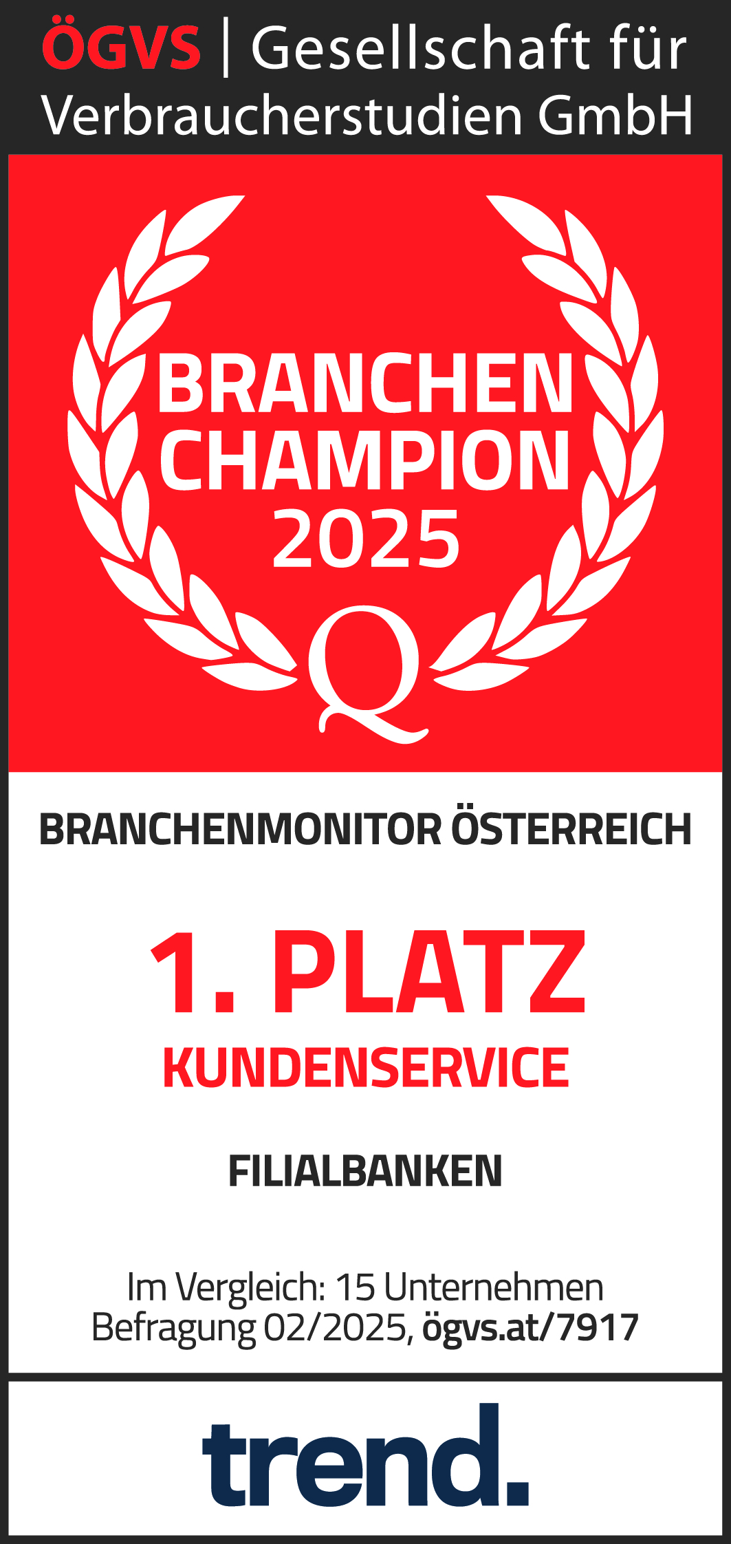 ÖGVS-Auszeichnung: Branchen-Champion 2025 | 1. Platz Kundenservice Filialbanken
