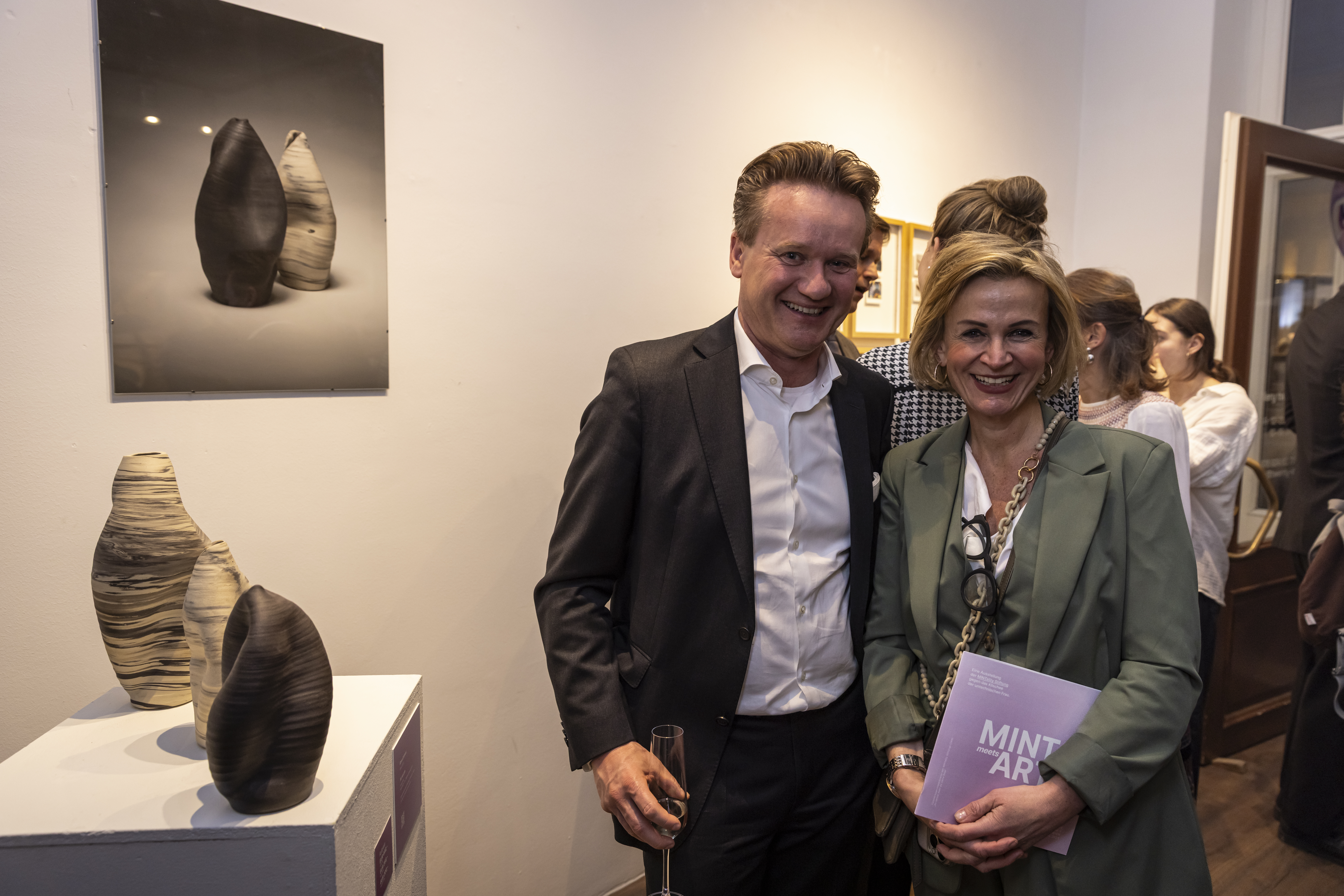 Ein Höhepunkt des Abends war die Kunstauktion, moderiert von Andrea Jungmann, ehemalige Österreich-Chefin des renommierten Auktionshauses Sotheby’s. Alle ausgestellten Werke wurden dabei versteigert – mit einem fairen Erlösmodell: 75 Prozent der Einnahmen gingen direkt an die Künstlerinnen, 25 Prozent fließen in neue Projekte der MINTality Stiftung zur Förderung junger Frauen in MINT-Bereichen. Ein weiterer visueller Akzent wurde durch die digitale Raumgestaltung im unteren Galeriebereich gesetzt – gestaltet vom Künstlerkollektiv OMAi, das mit animierten Visuals und Lichtinstallationen eine künstlerisch-technologische Atmosphäre schuf.
